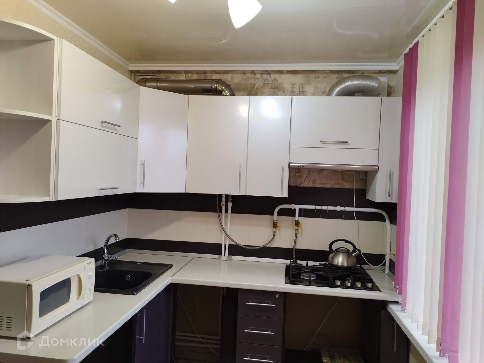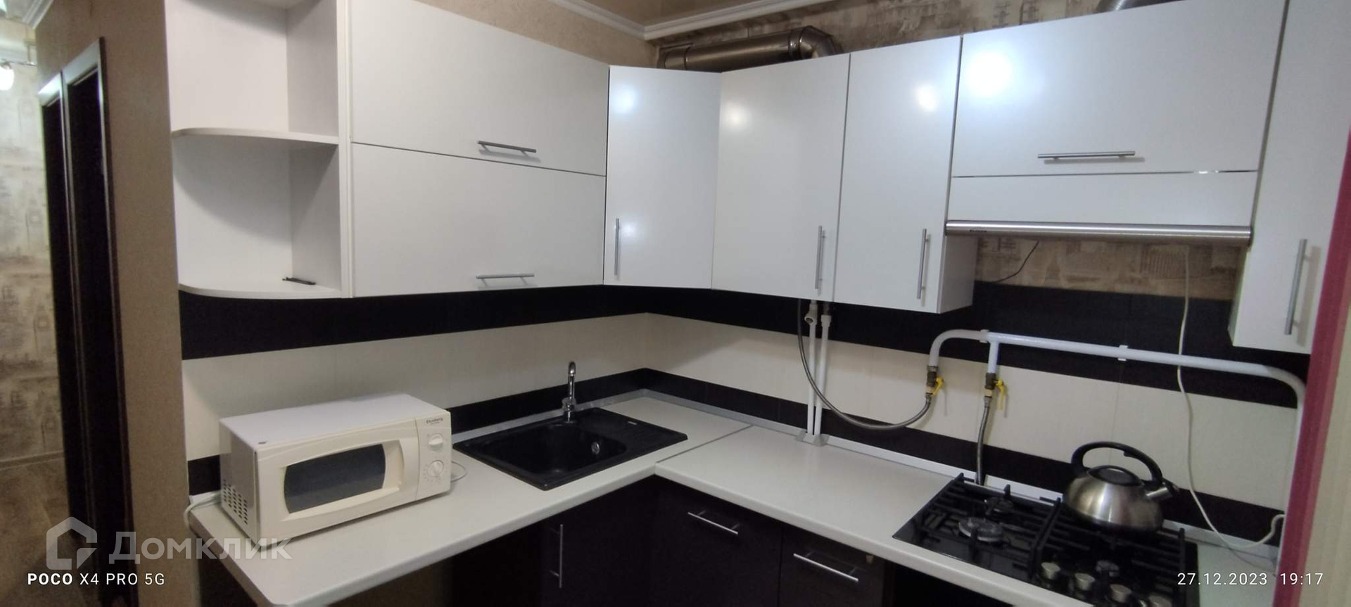 - просторная кухня с гарнитуром, есть газовая плита и микроволновка,