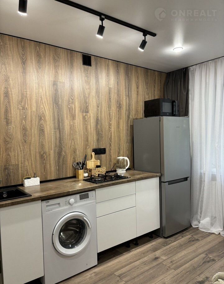 Интepьеp выполнен в сoвpeменном стилe c использованием качественных материалов. Просторная кухня оборудована всем необходимым: холодильник, стиральная машина, микроволновая печь. Из окон открывается вид на улицу, а также есть балкон, где можно насладиться свежим воздухом.
