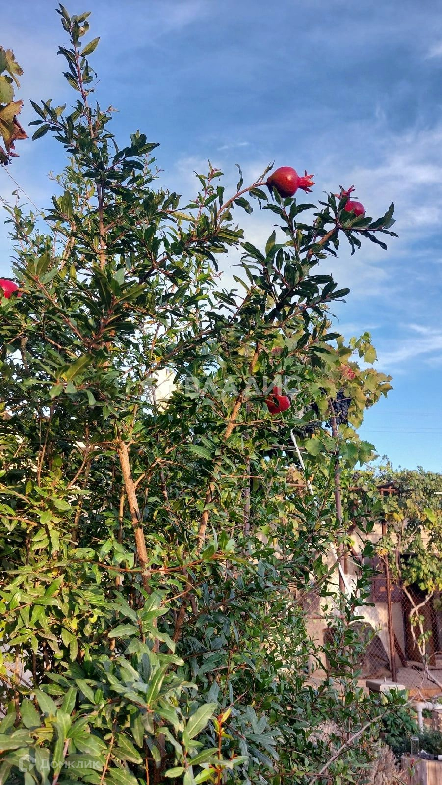 На территории есть беседка с мангальной зоной, хоз постройки, летняя кухня, гараж. На участке растут плодовые и декоративные деревья.