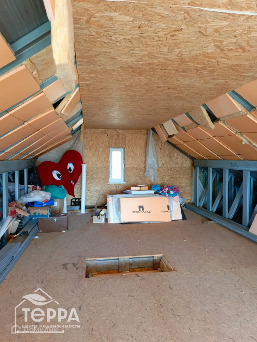 ✔На второй этаж установлена чердачная лестница, которая конструктивно собирается в потолок как дверца. Весь этаж единое сплошное пространство в 45 кв.м. (требует доработки в отделке).