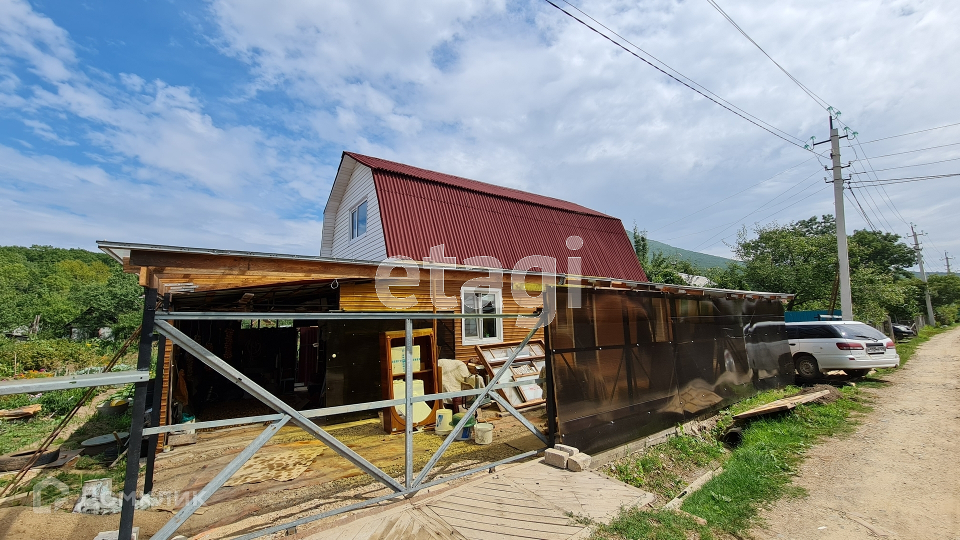 * Навес перед домом и откатные ворота