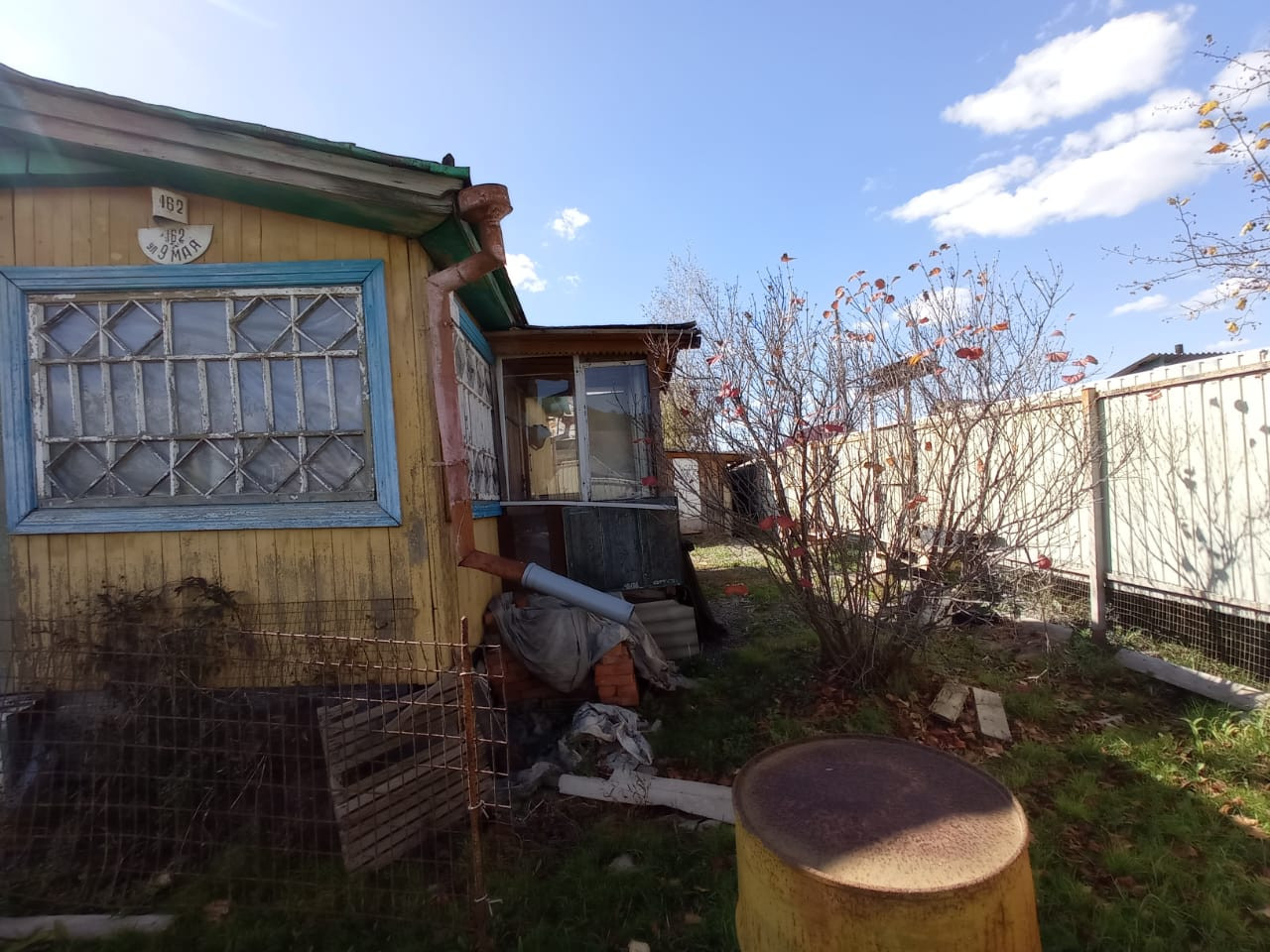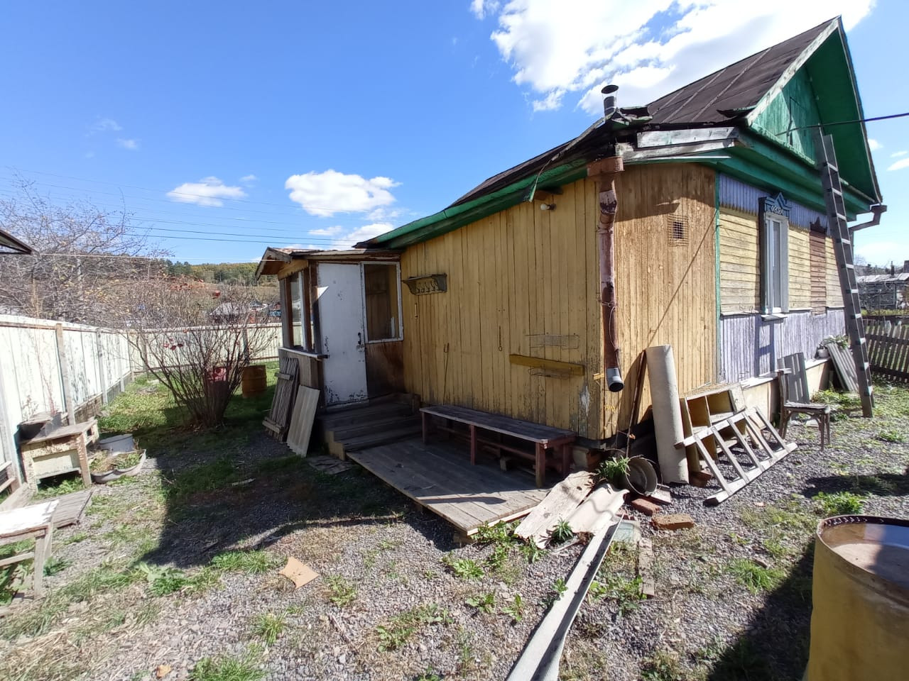 Новый дровяник , сарай, старенькая банька.