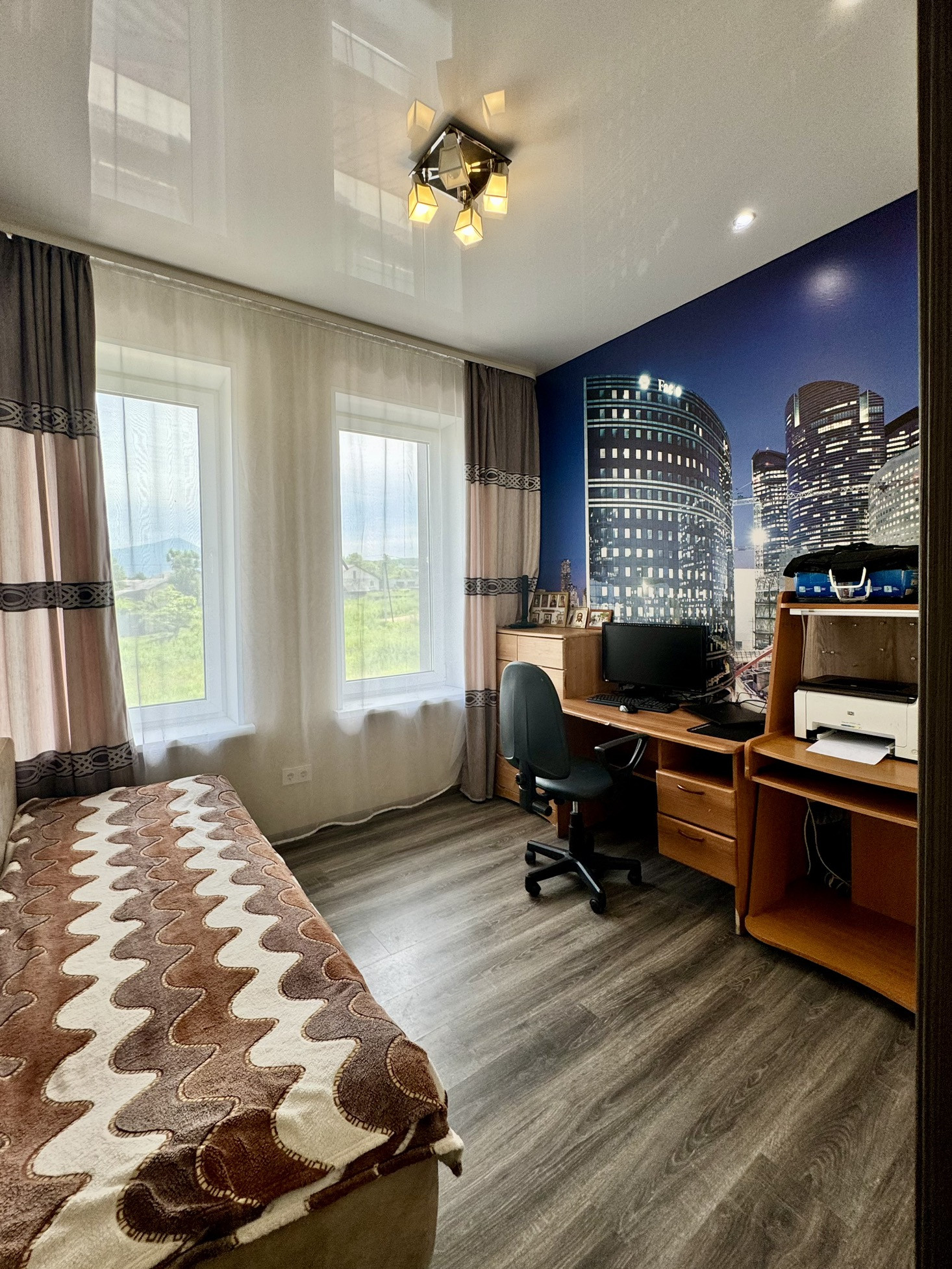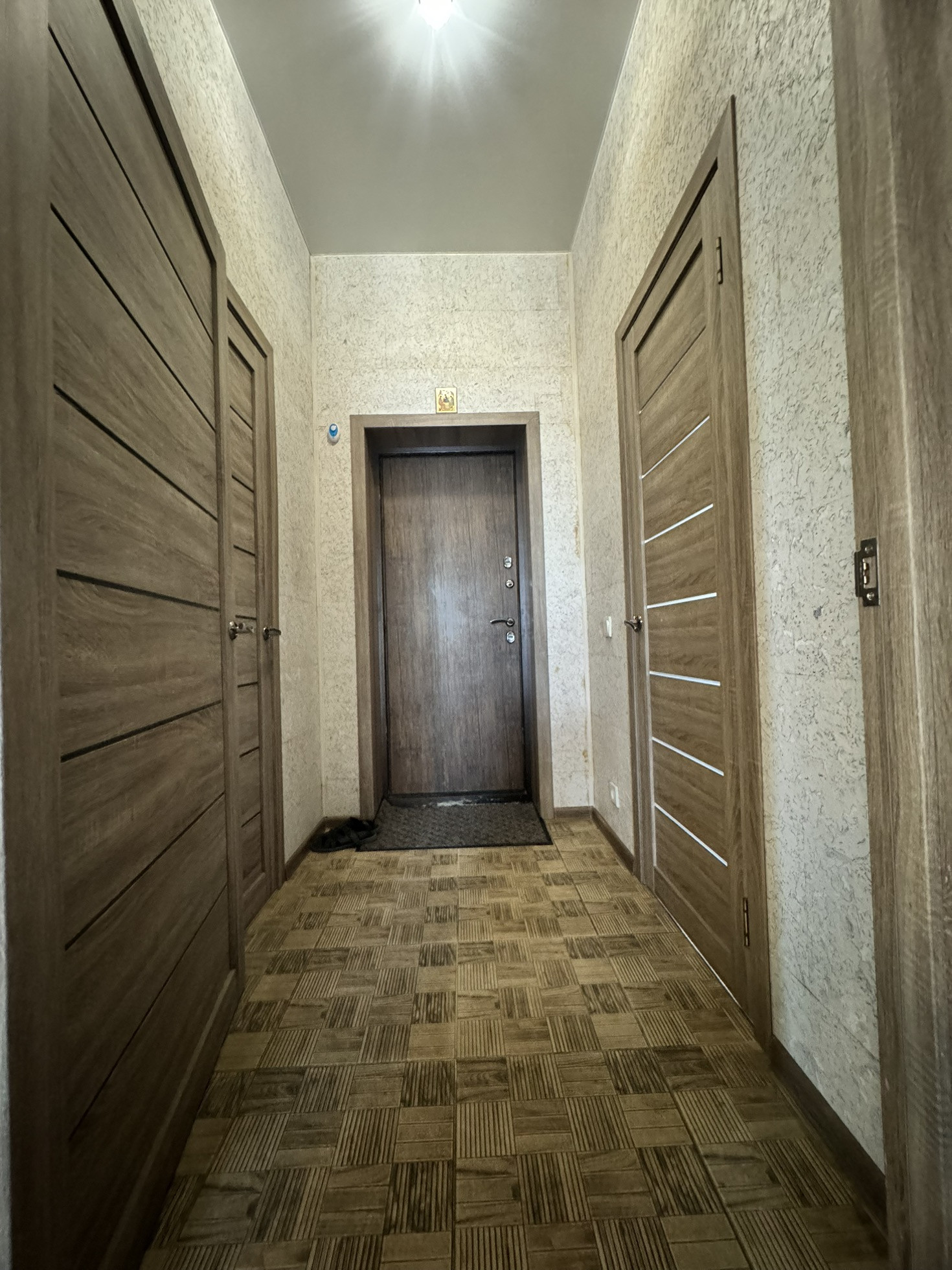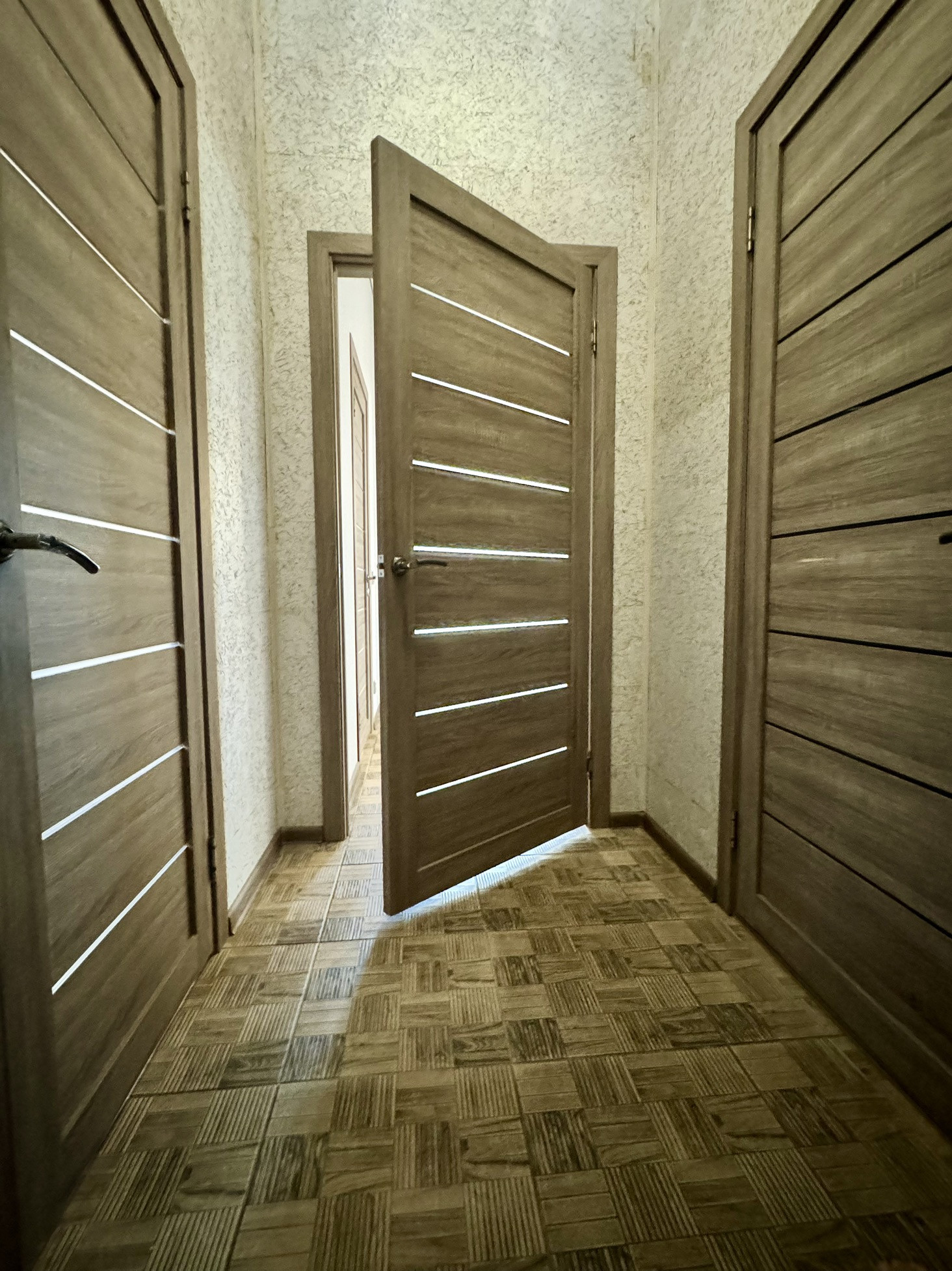 Напольное покрытие по всему этажу - качественный ламинат.