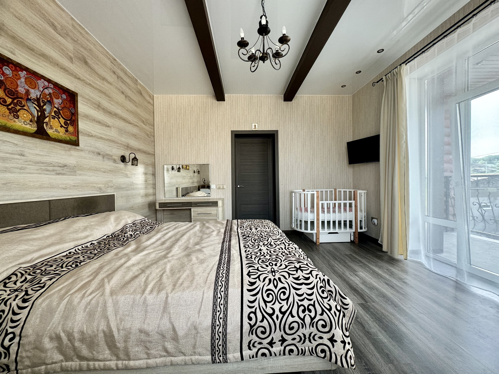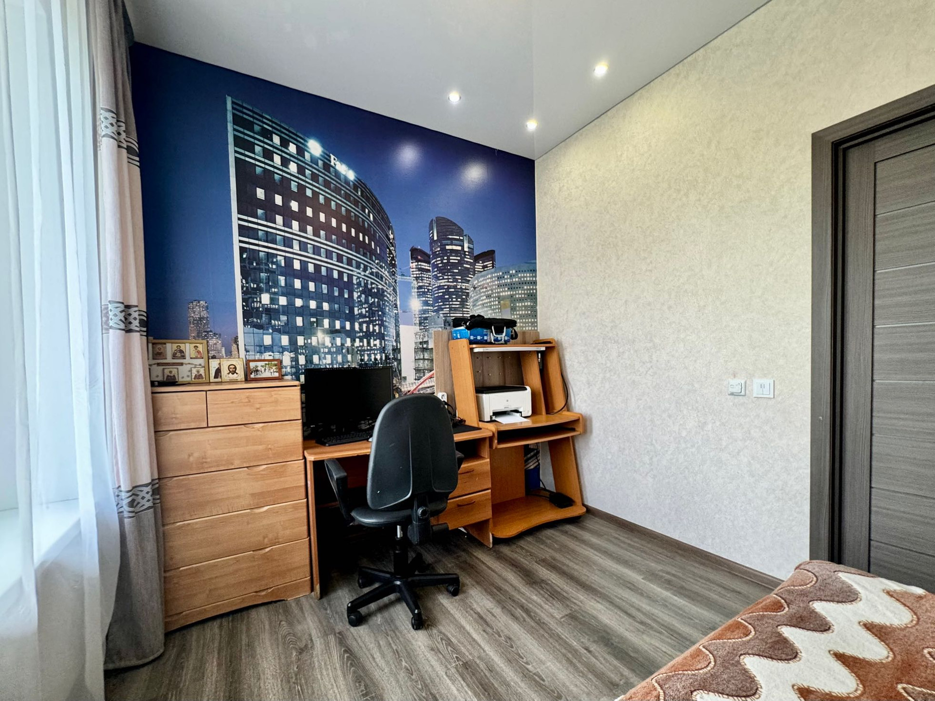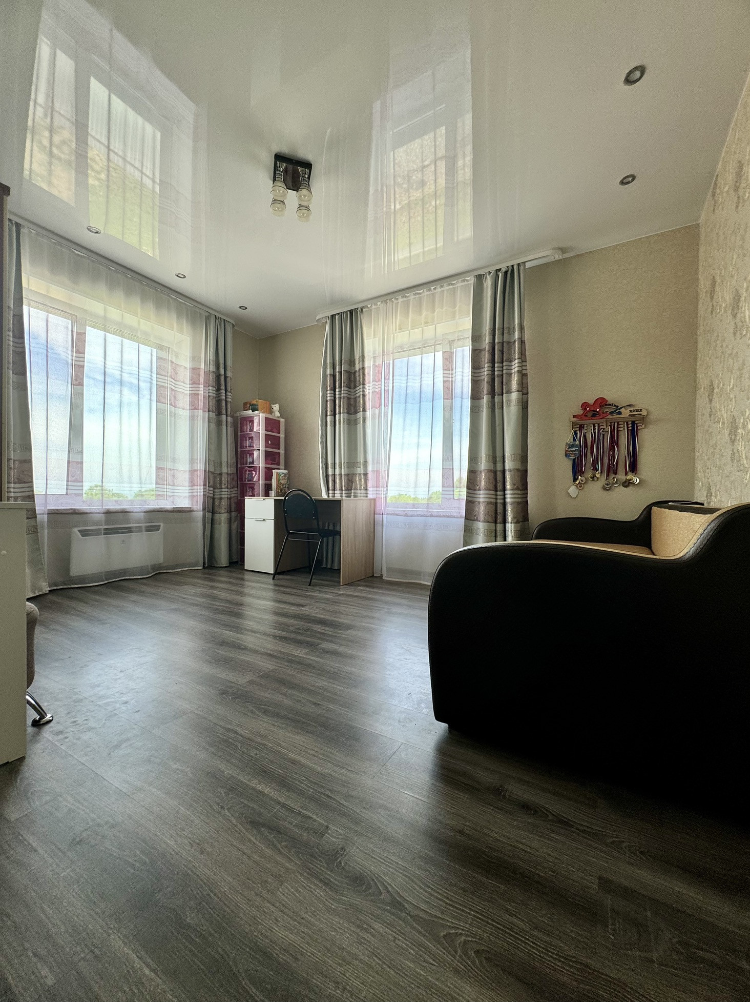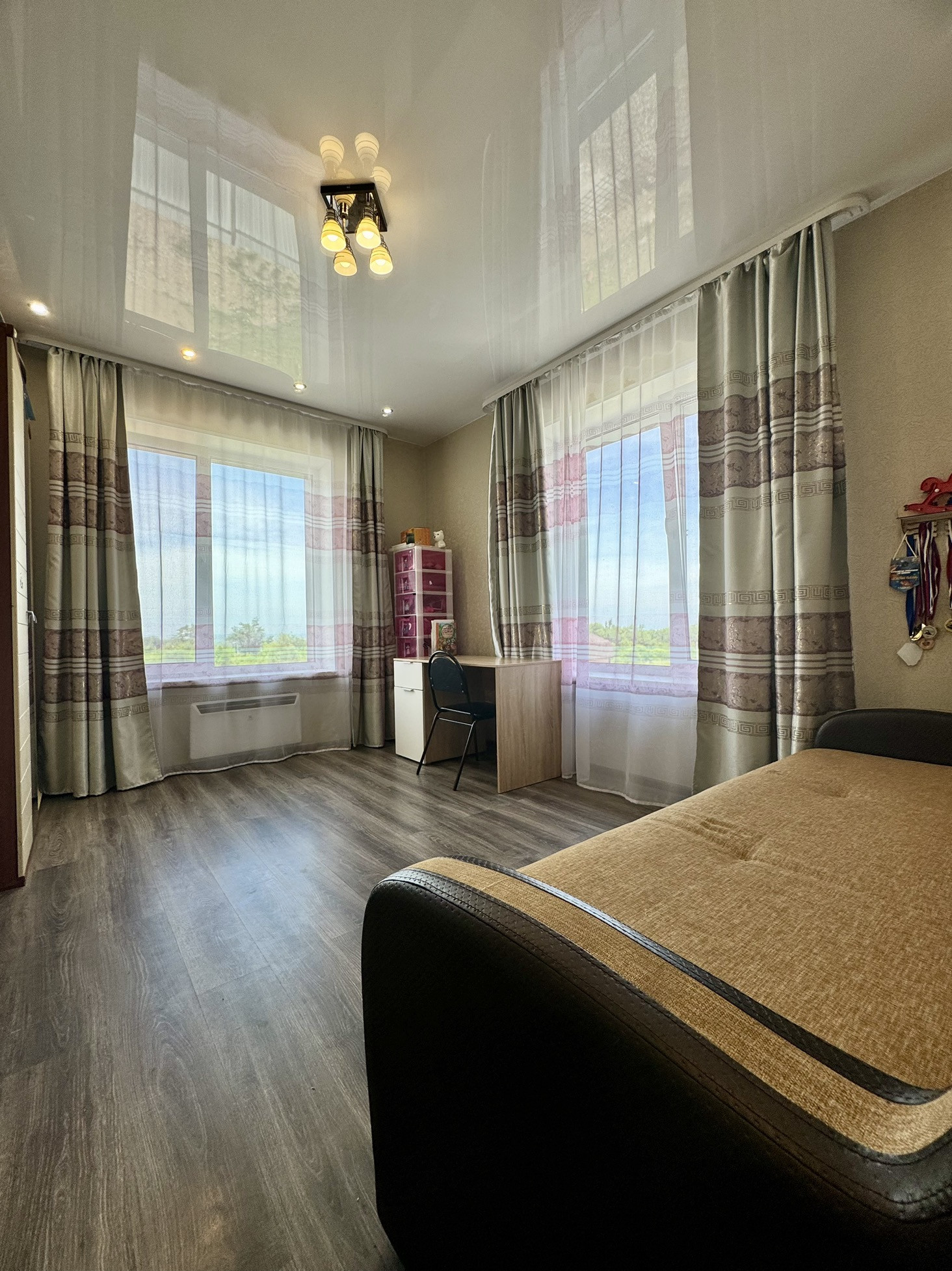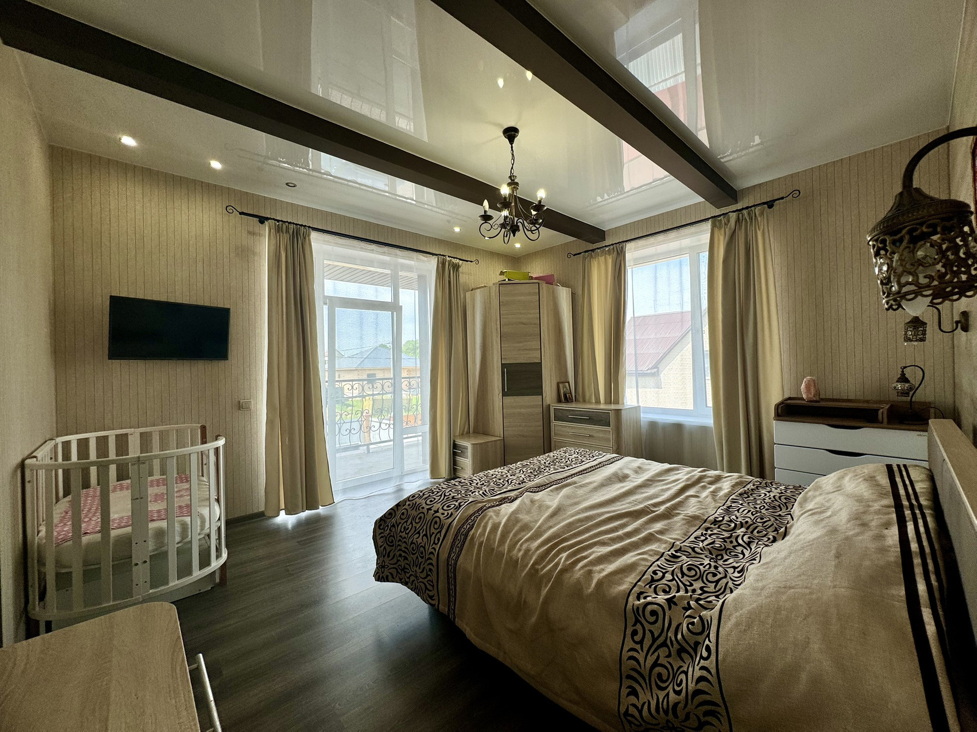 Кабинет, просторный сан.узел (отделан керамогранитом, установлена дорогая каменная ванна), спальня с выходом на балкон, гардеробная и 2 детских спальни.
