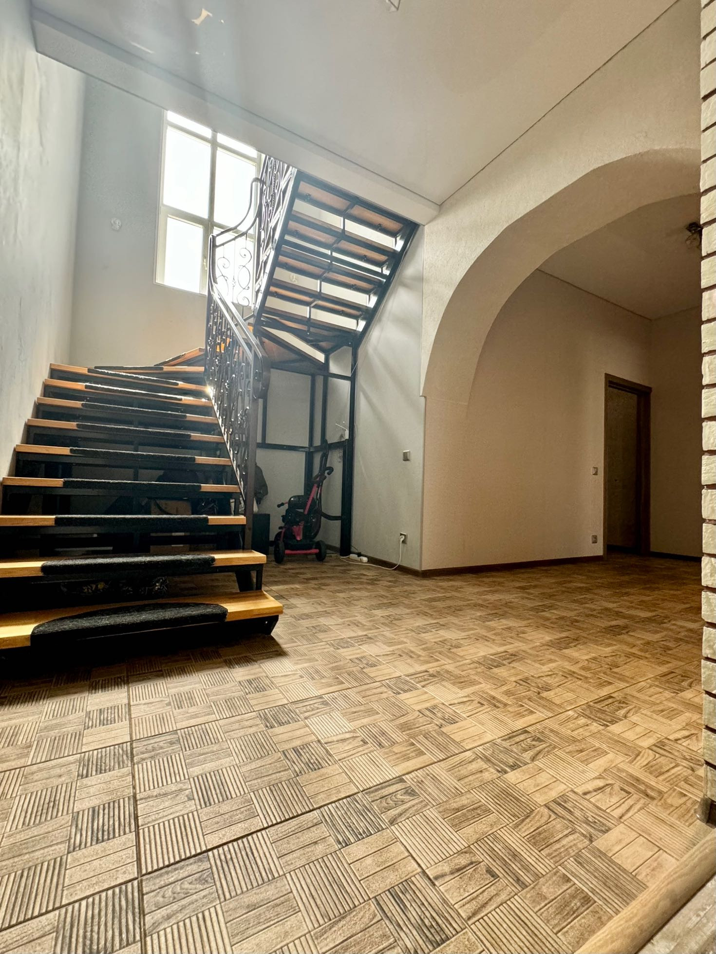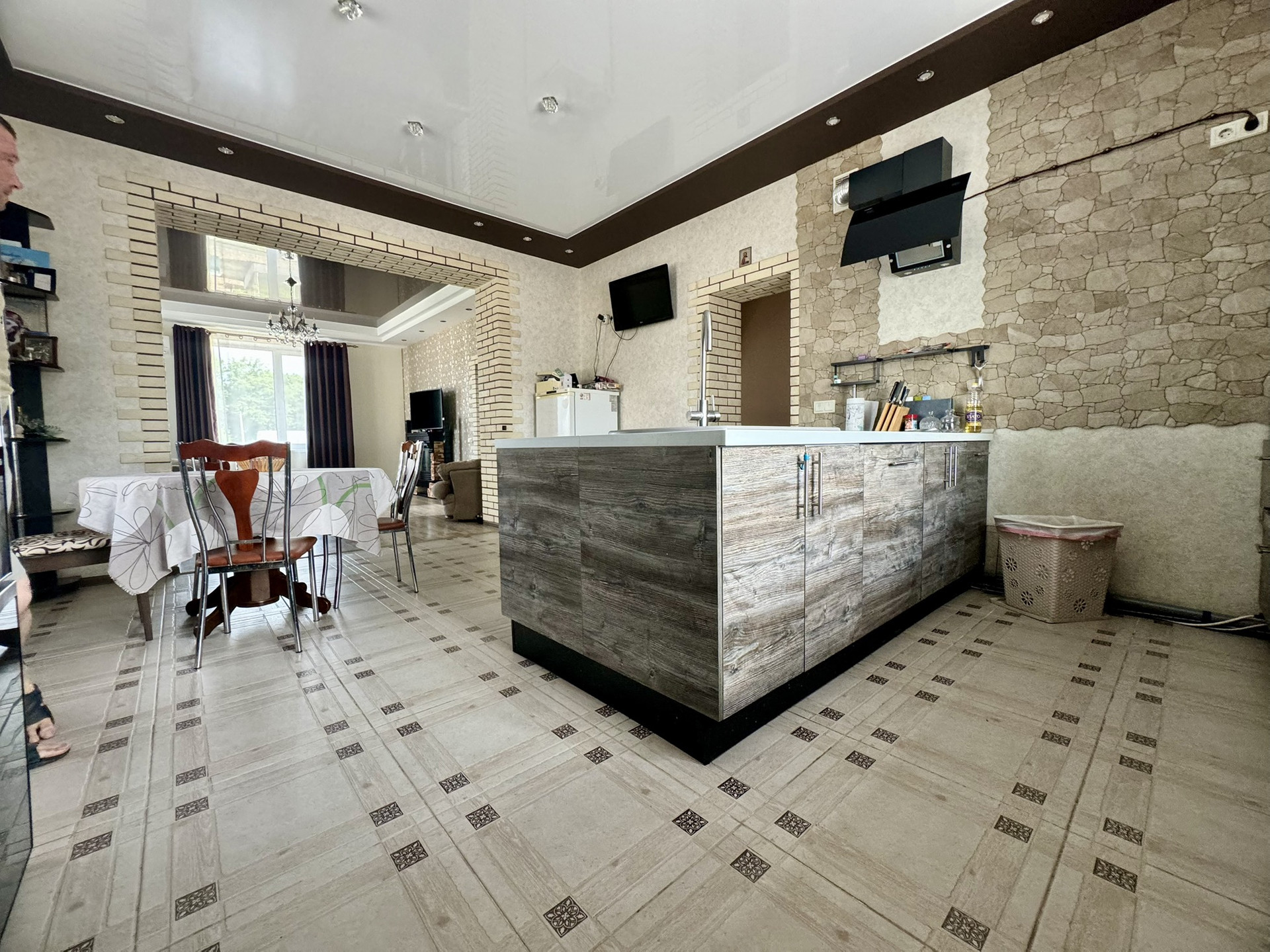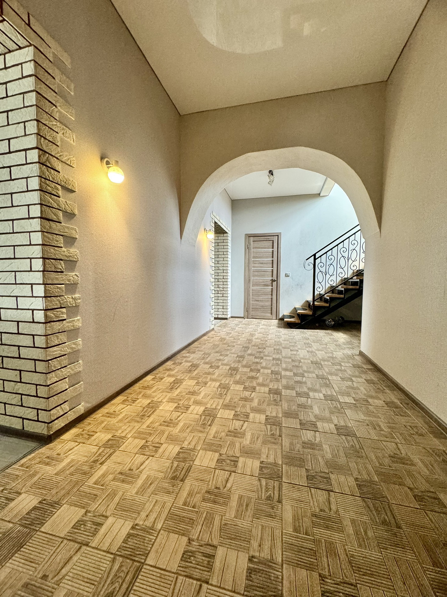 коридор, гардеробная, котельная (имеет дополнительный вход с улицы), сан.узел, большая кухня-гостиная.