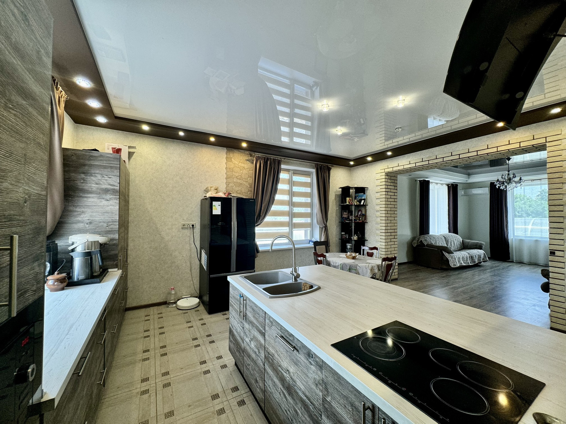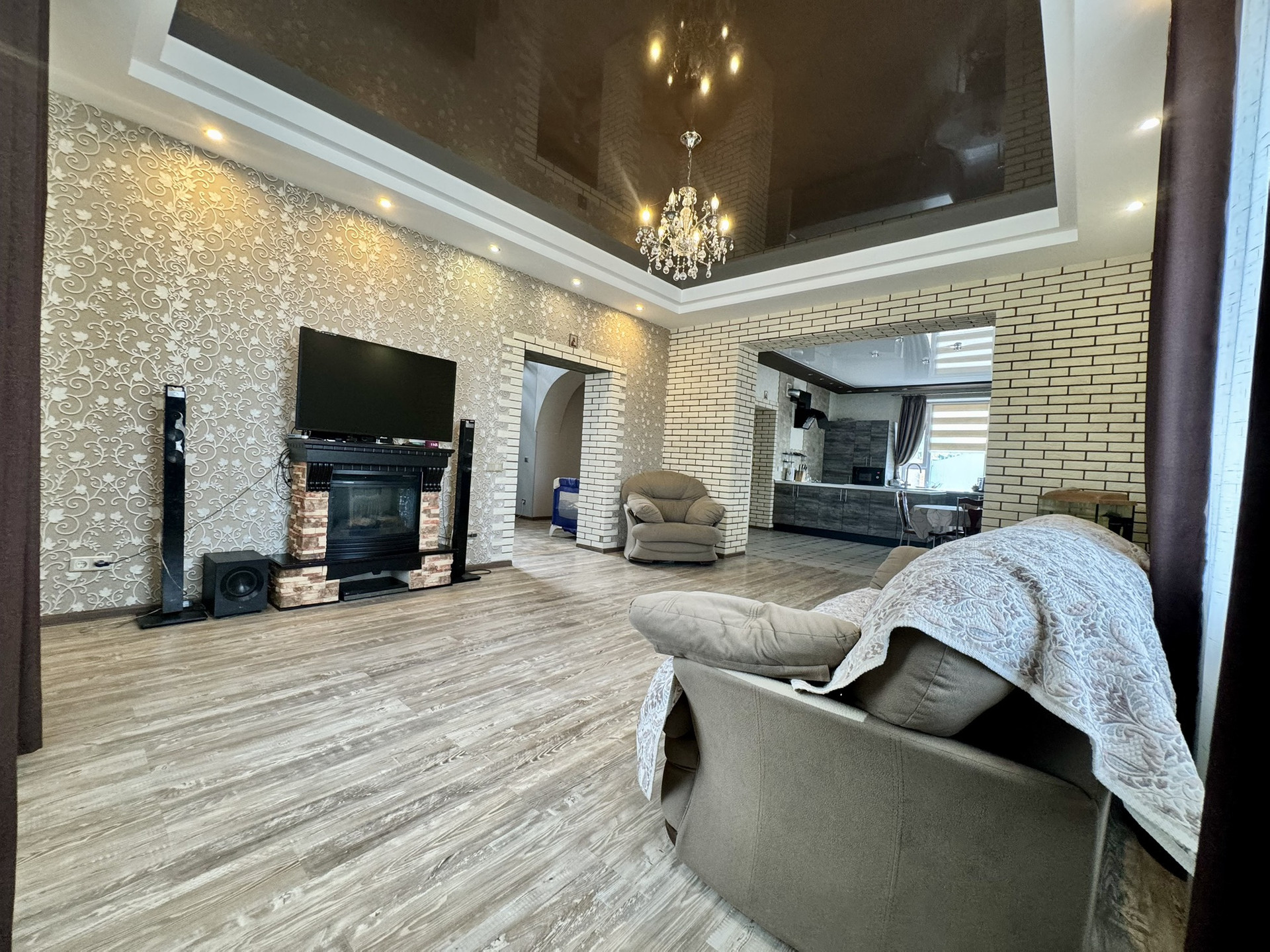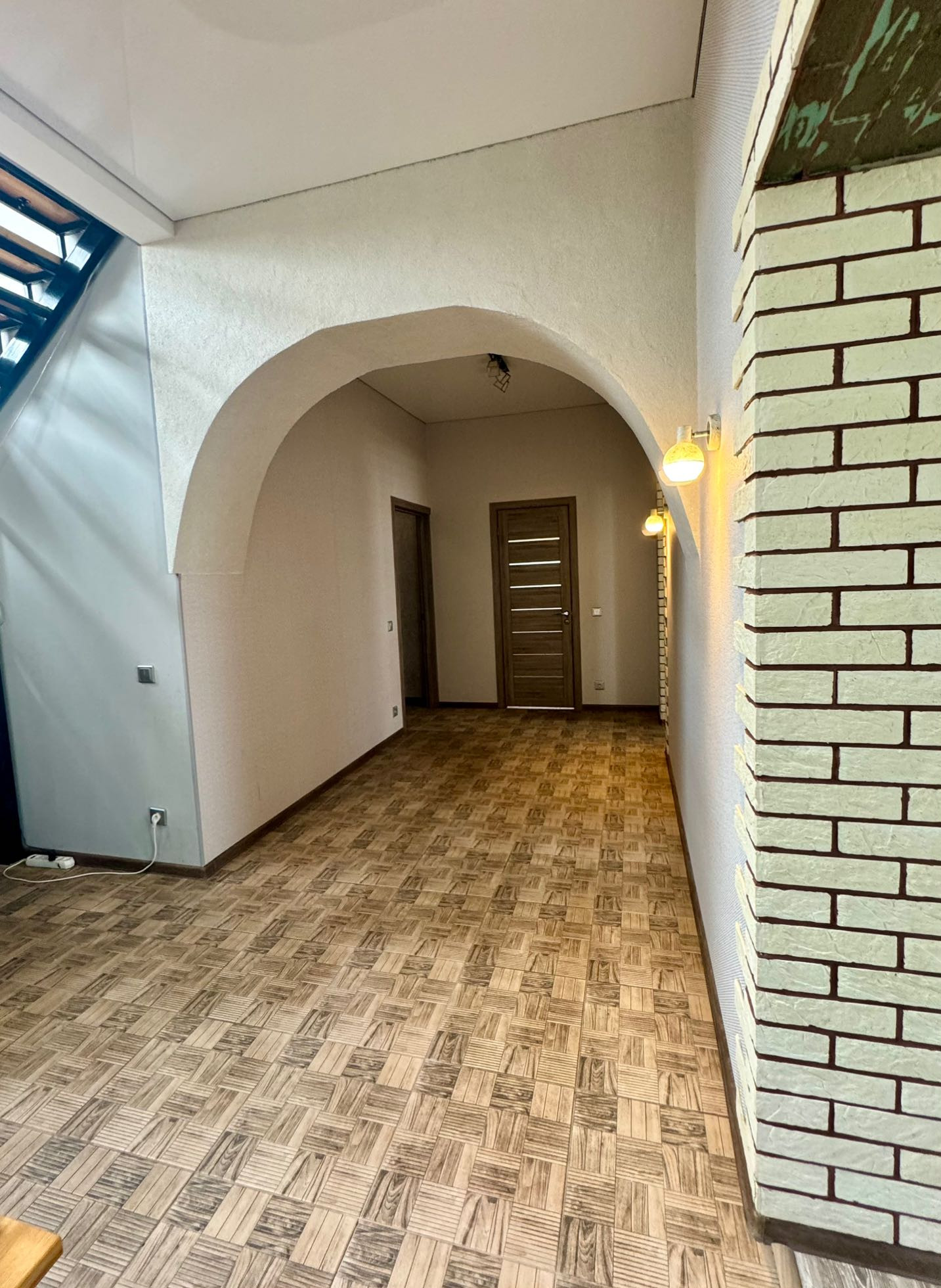 коридор, гардеробная, котельная (имеет дополнительный вход с улицы), сан.узел, большая кухня-гостиная.