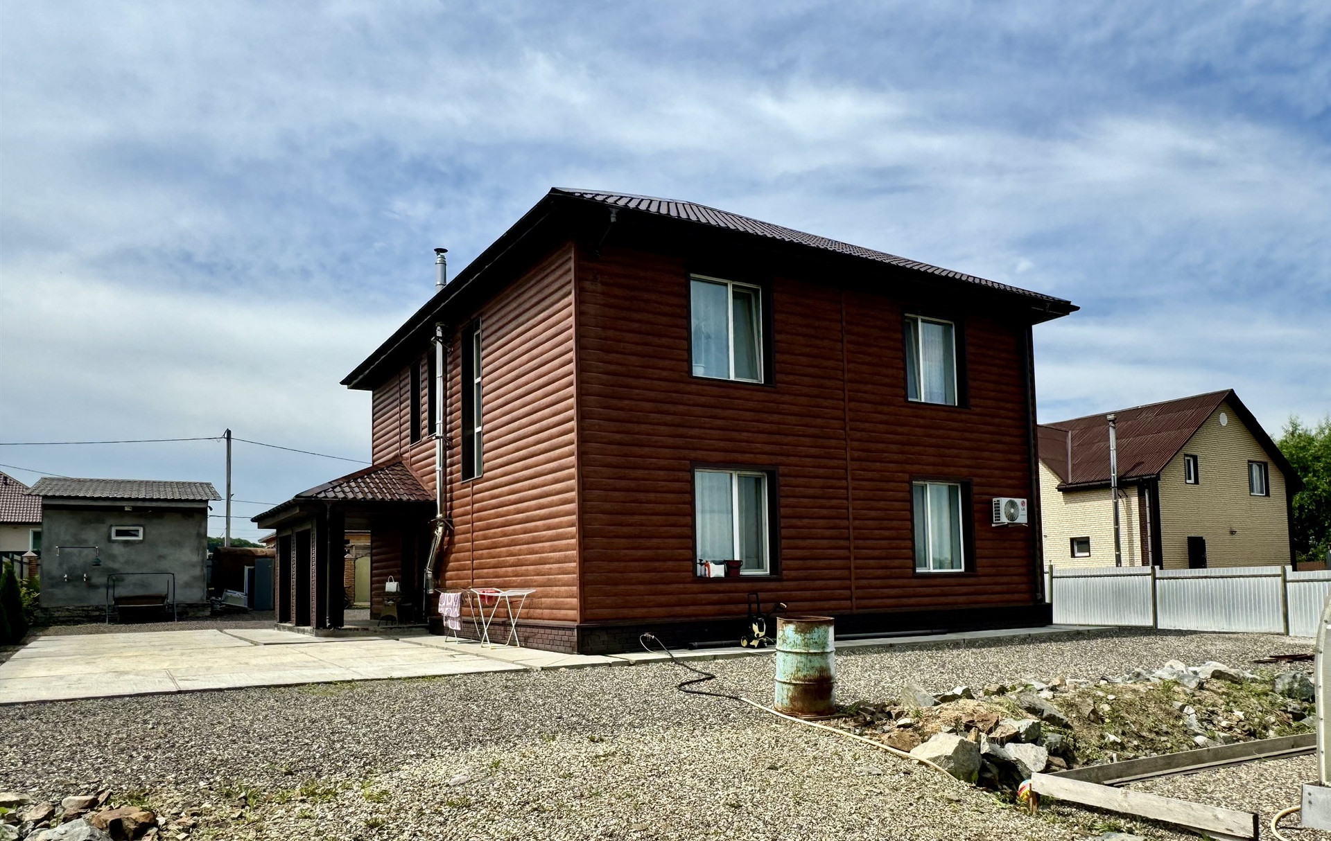 Коттедж был построен в 2017 году с использованием качественных материалов. Фундамент основательный ленточный. Для строительства дома использовали Тереховский андезито-базальтовый блок, плиты перекрытия ЖБИ. Высота дома без учёта крыши 6,5 метров, толщина стен с учётом утепления 50 см. Обшит дом металлическим сайдингом «под бревно». Крыша перекрыта металлочерепицей. Высота потолков 1-й этаж 3м, 2-й этаж 2,9м. Электричество заведено 15 кВт (380 w), водоснабжение централизованное, канализация - септик (10 куб.м.) Подключен интернет, уличное-видеонаблюдение работающее в онлайн режиме с выводом на смартфон.