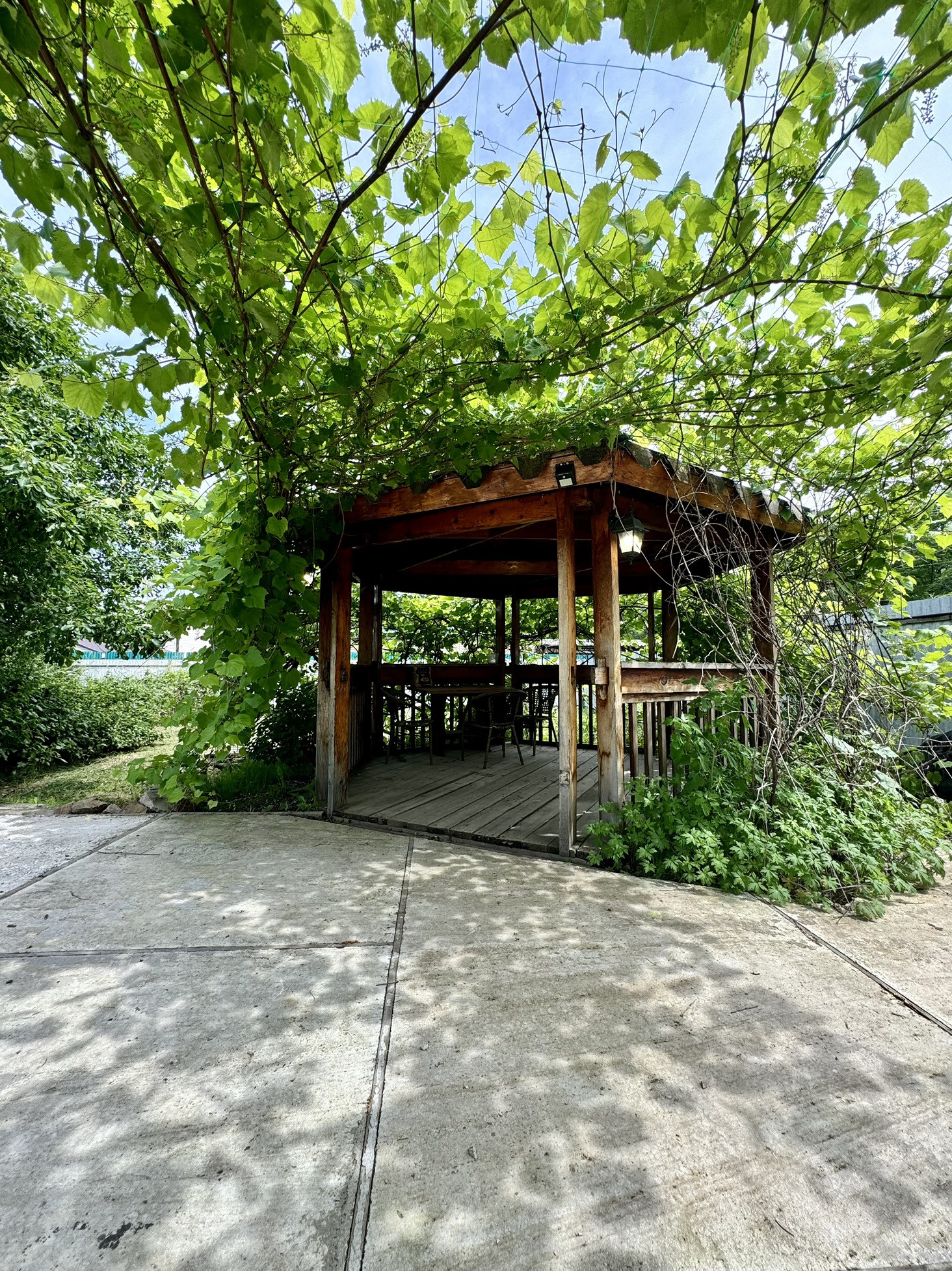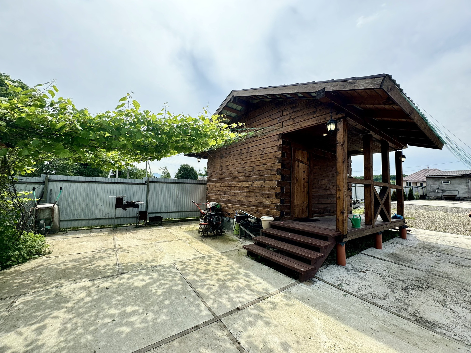 На участке построена хорошая баня, гараж (8/4,5) с погребом, беседка, 2 теплицы, есть сад с плодово-ягодными насаждениями. Участок отсыпан, перед домом и вокруг бани залит бетоном, завезена плодородная земля.