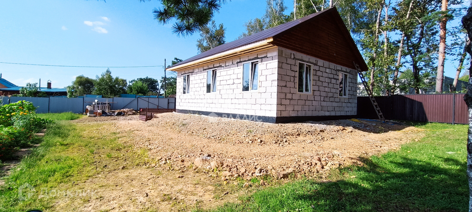 Продам недостроенный дом 90 кв.м., с двумя участками (15 и 5 соток) материал стен (газоблок 280*250), стоит на плите 25 см., окна пластиковые, крыша профильное железо, водопровод центральный, канализация септик 5 кубов (всё заведено в дом), забор по всему периметру профильное железо, ворота откатные, на участке имеются: беседка, душ, туалет. Отсыпка участка произведена, сделан водоотвод(дренаж). Рассмотрим варианты обмена. Стоимость услуг агентства со стороны покупателя 35000 рублей