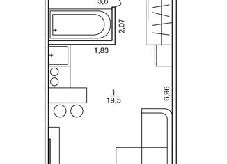 1-комнатная квартира на продажу, 22.3 м2, Октябрьская улица, 19/2