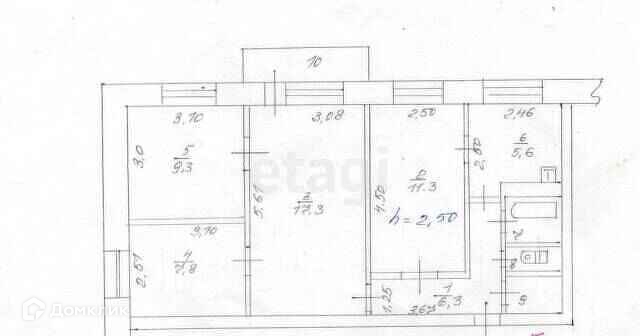 Общая площадь 62.6 м2