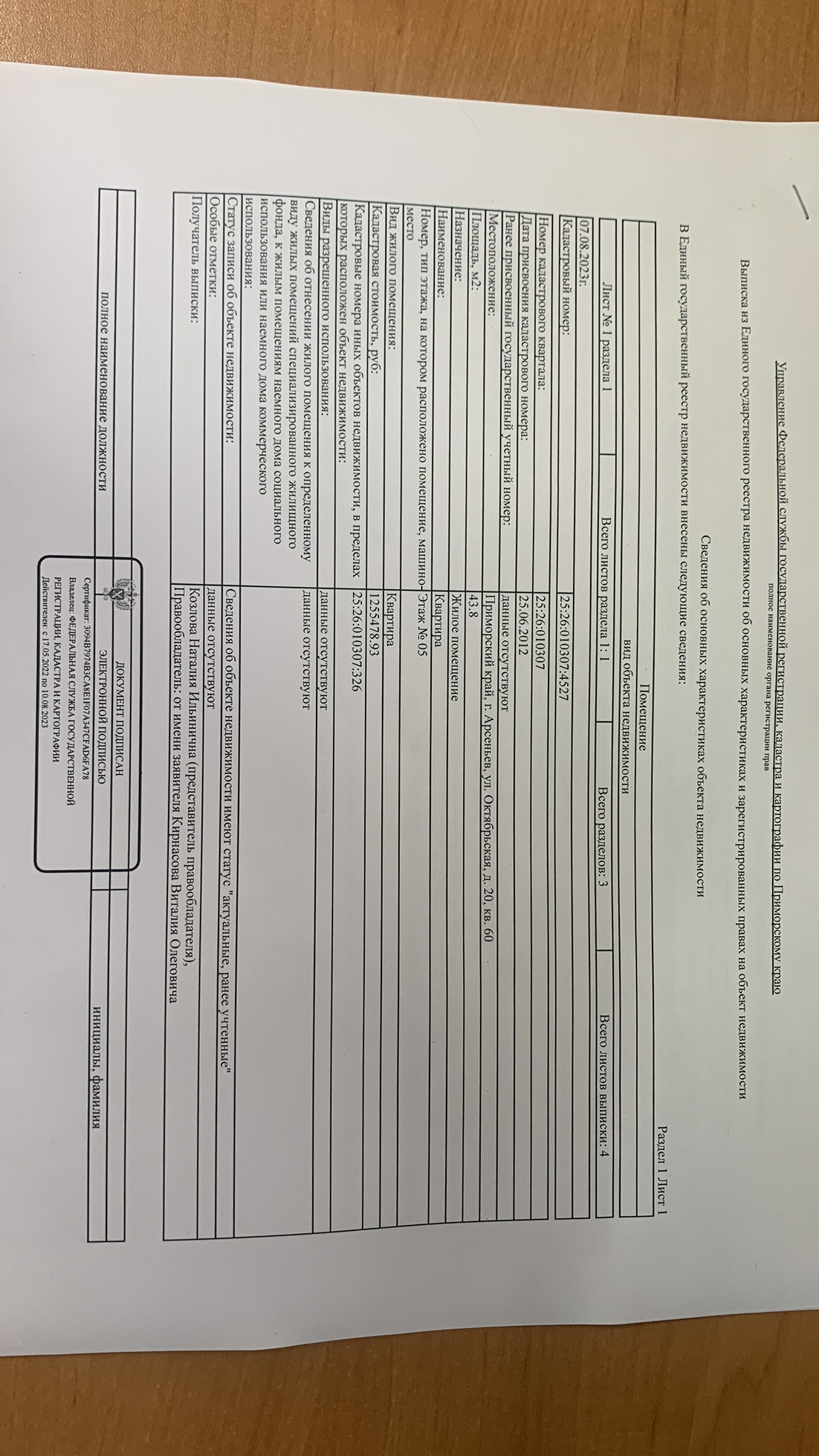 Стоимость недвижимости: