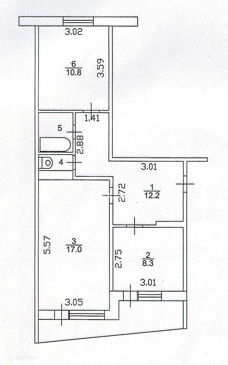 Общая площадь 51.6 м2