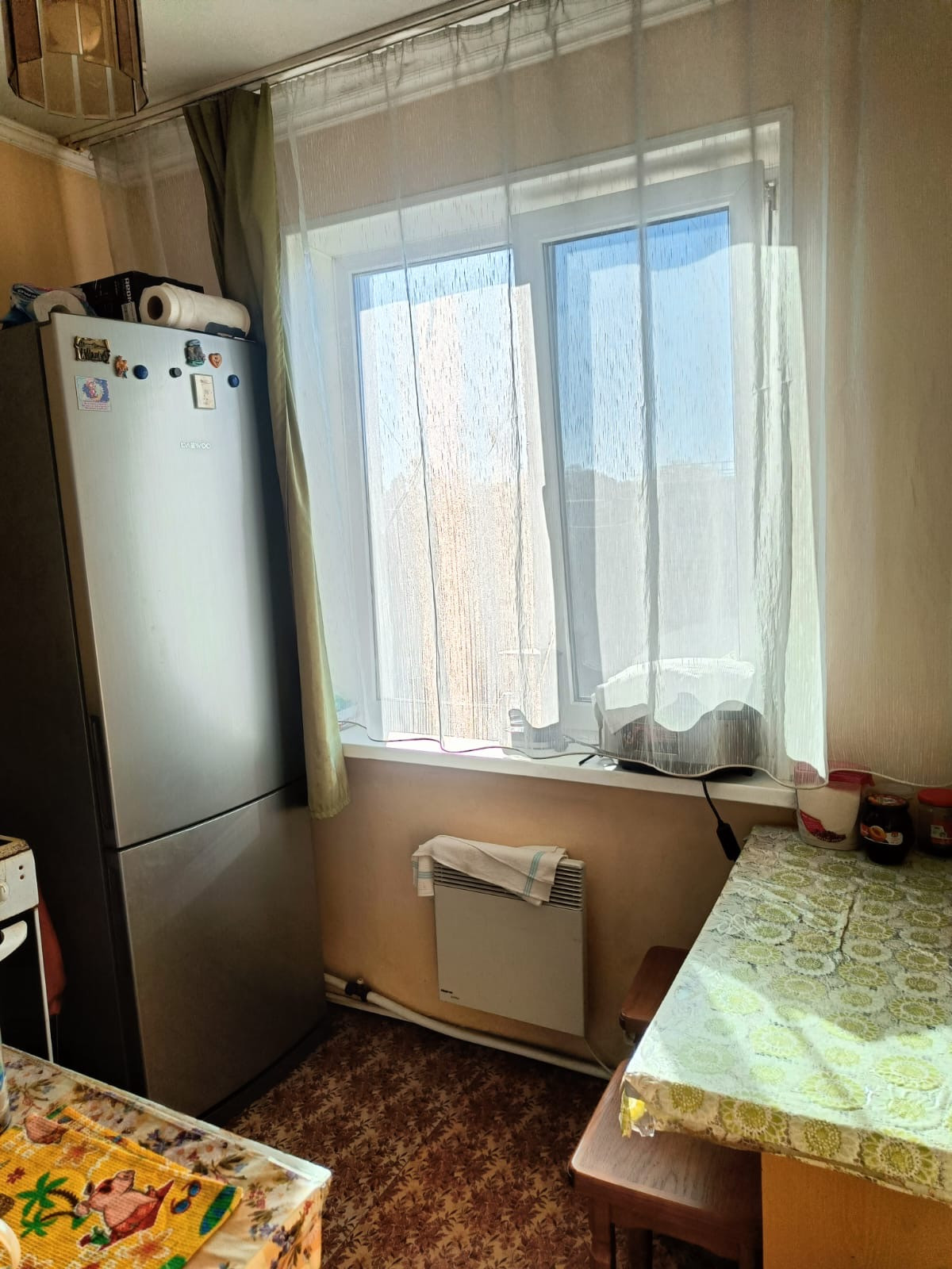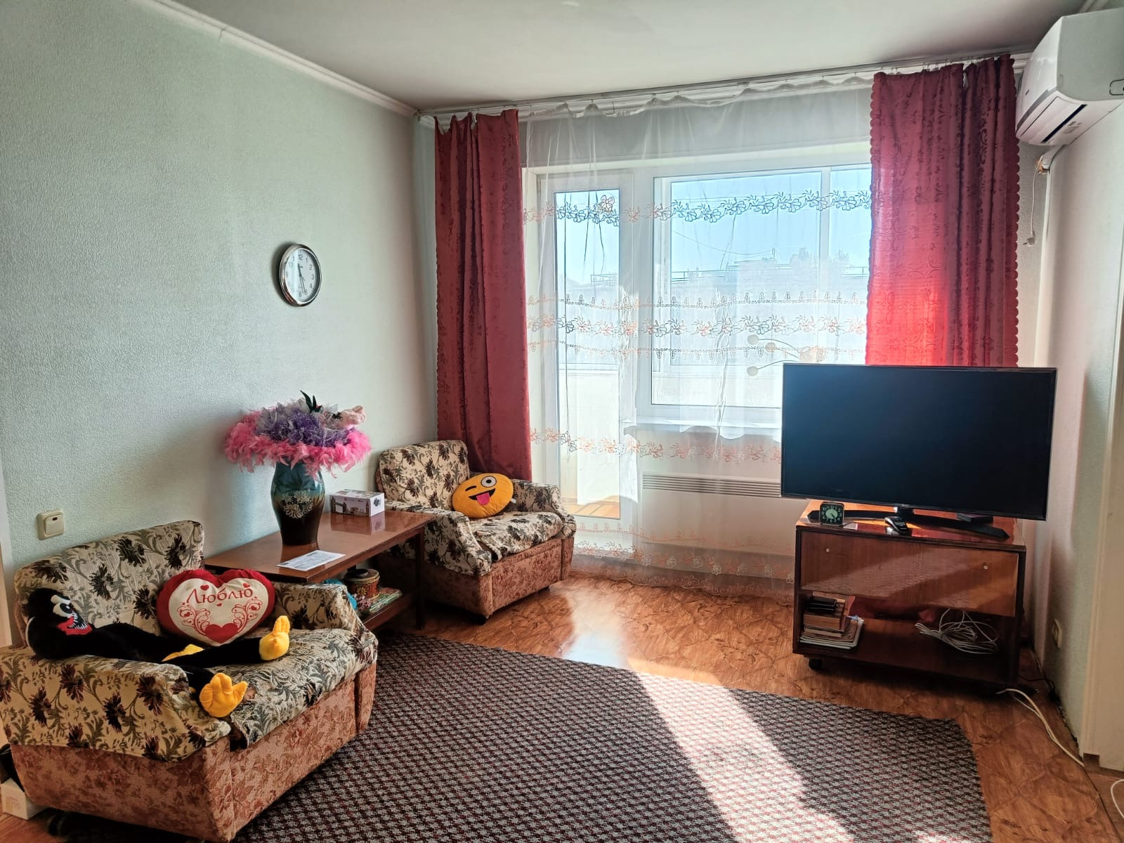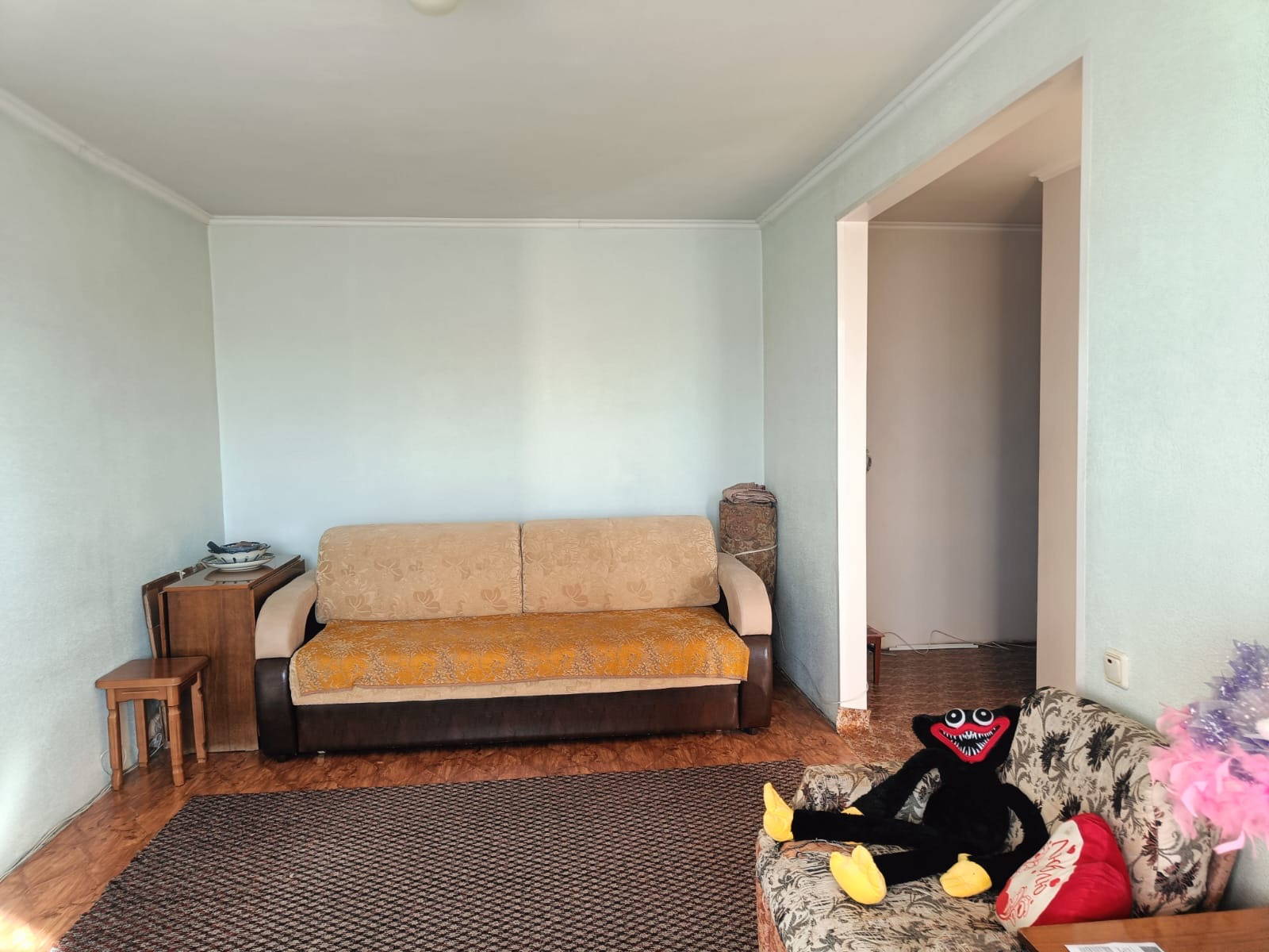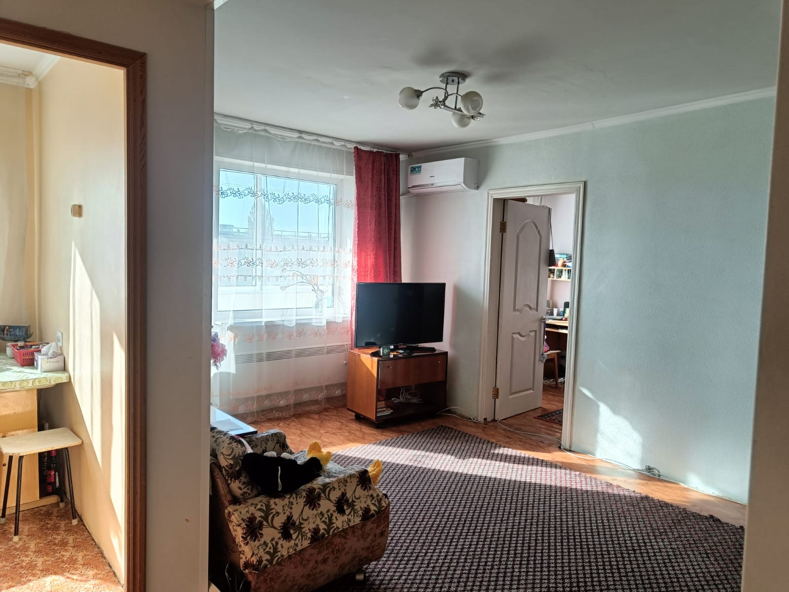 В квартире выполнен косметический ремонт, благодаря чему она выглядит свежо и аккуратно. Жилая площадь составляет 34.1 квадратных метра, а кухня занимает 5.6 квадратных метров. Также имеется балкон, откуда открывается вид на тихий и зелёный двор, где расположена детская площадка – прекрасное место для отдыха и игр ваших детей.