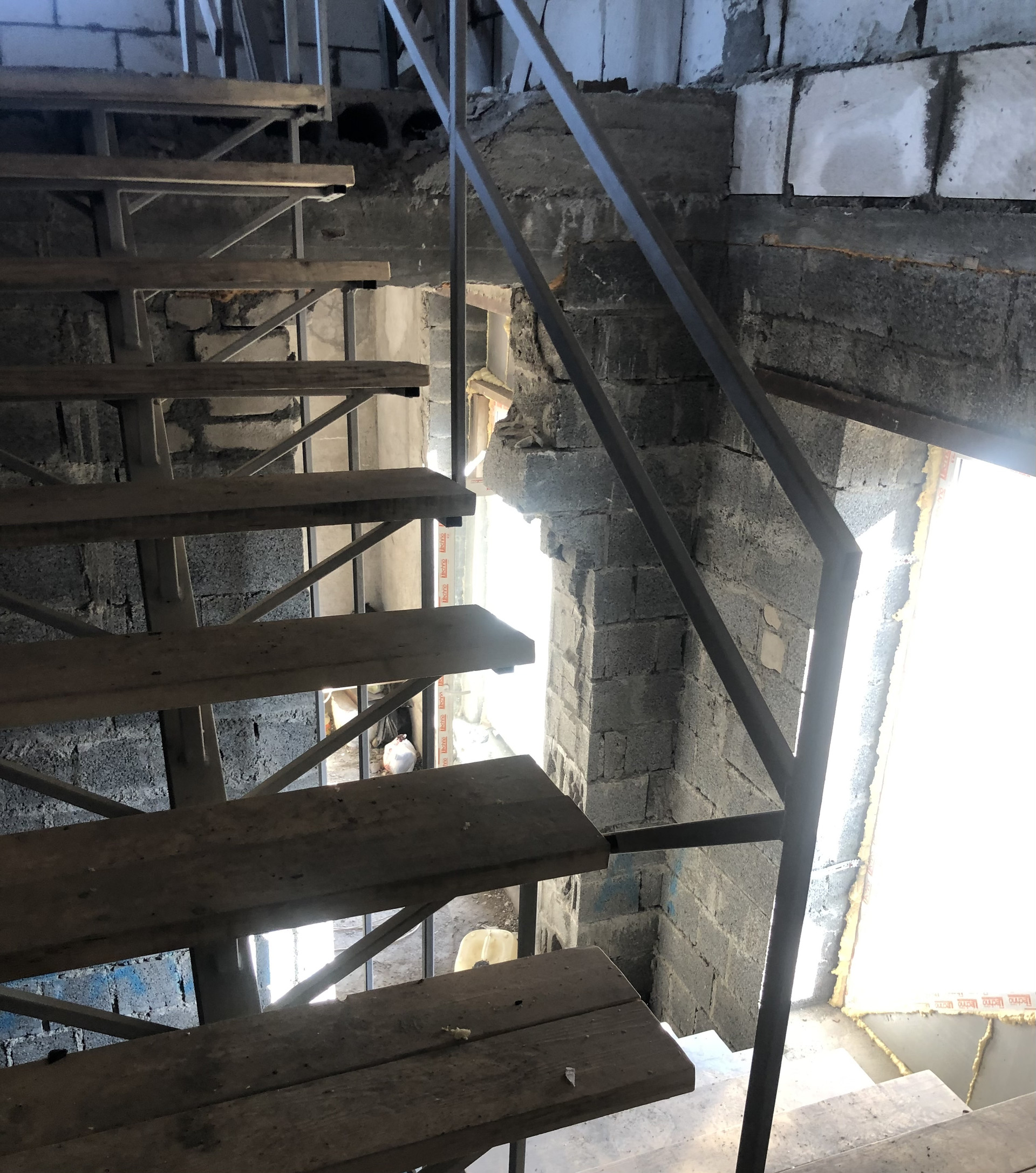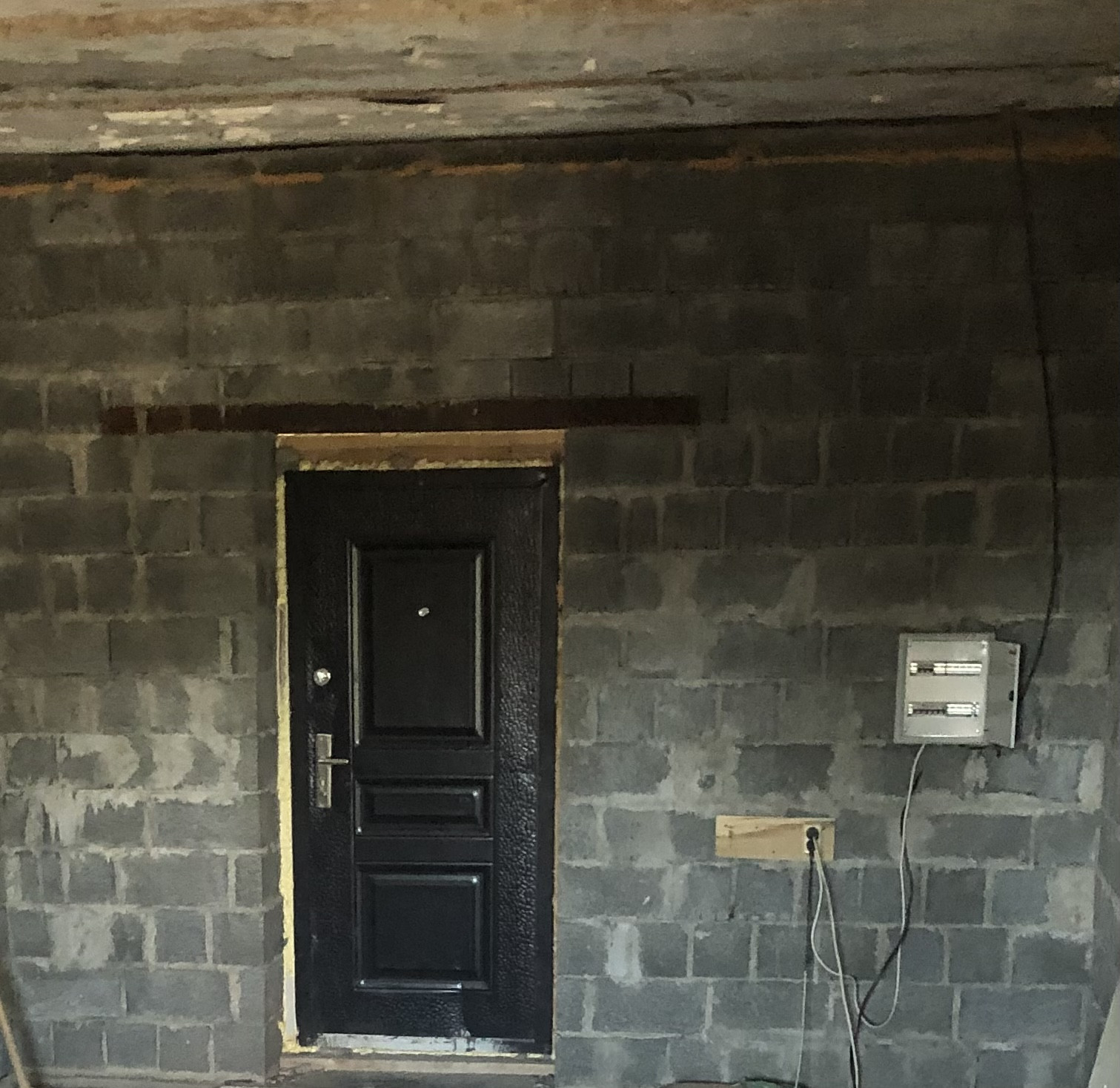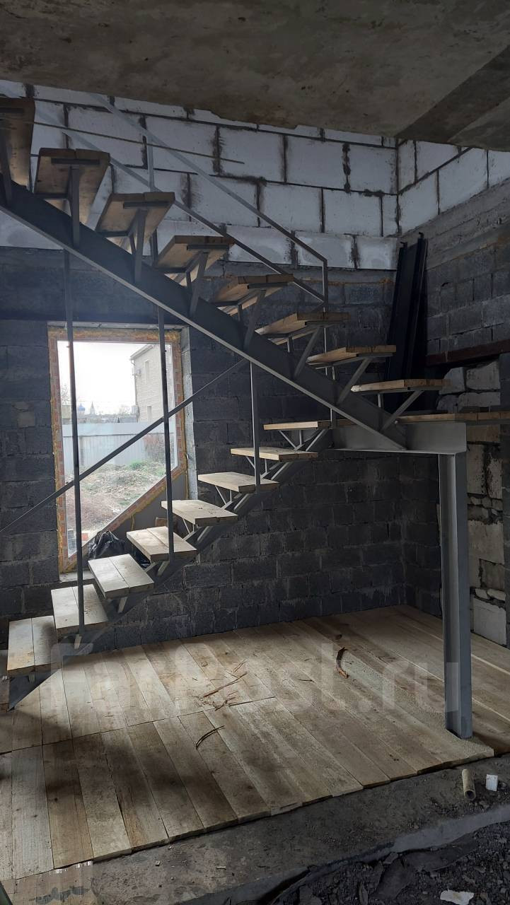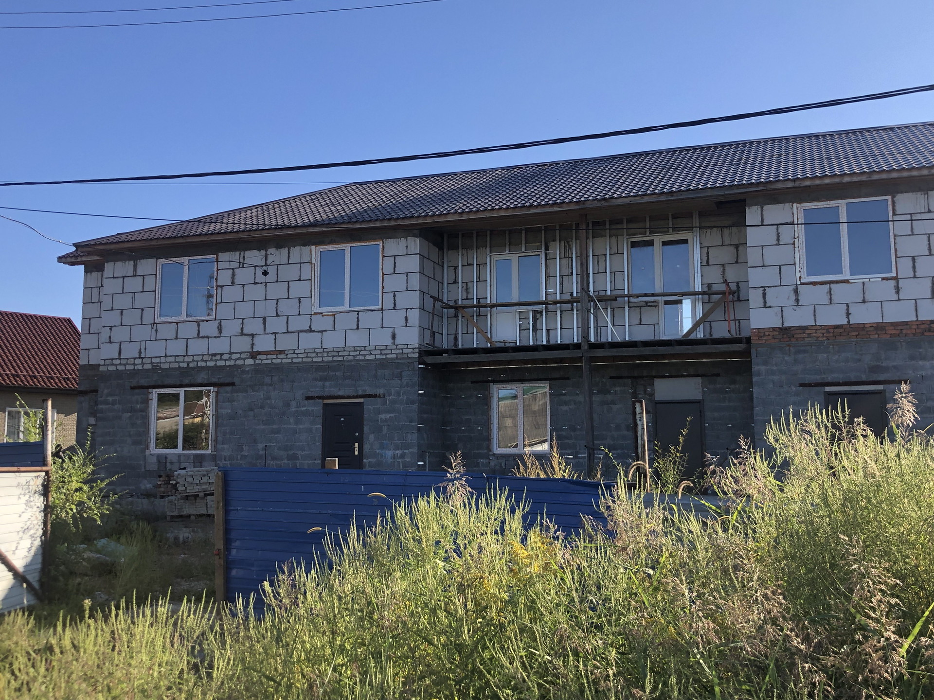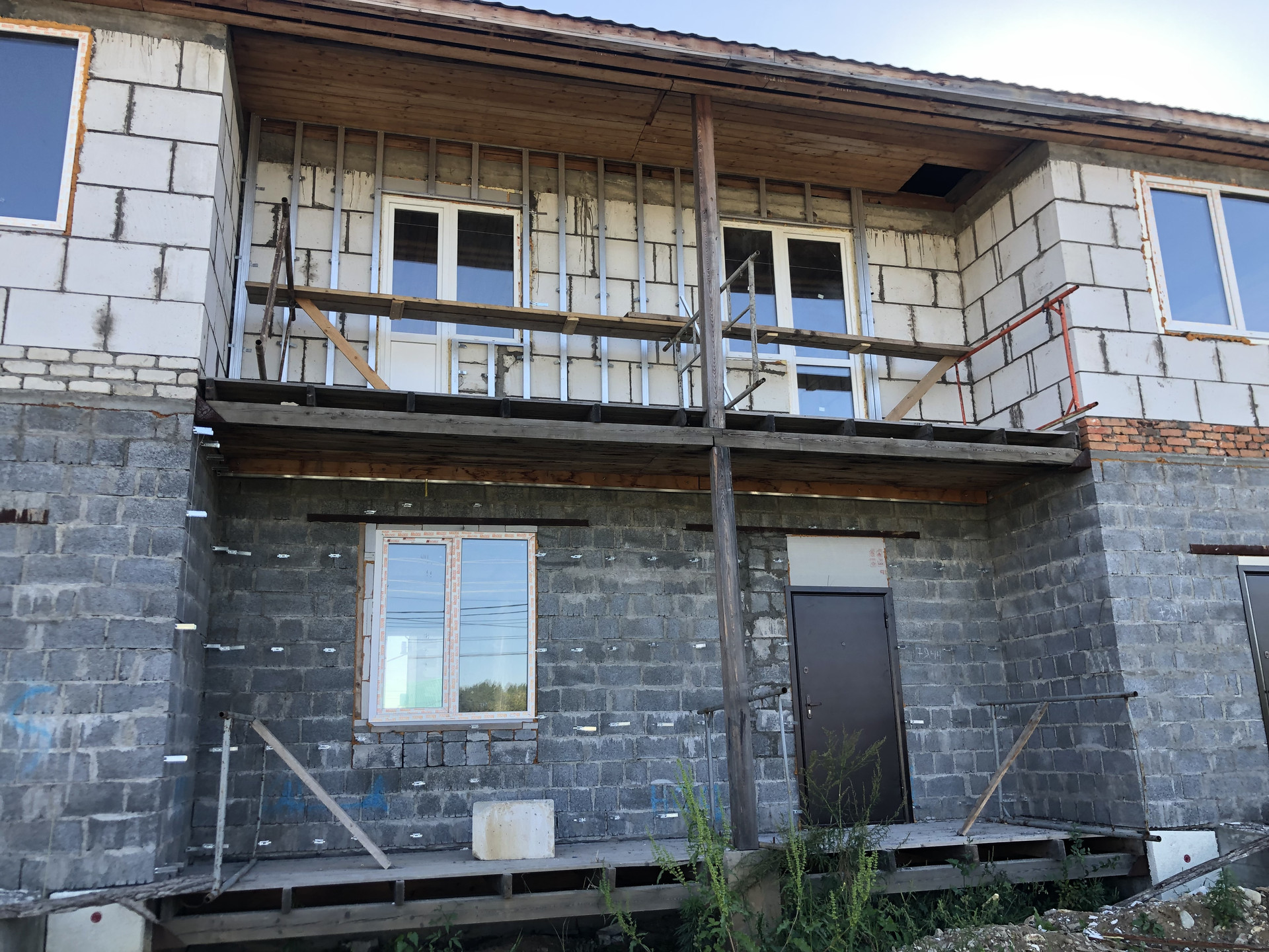 Первый этаж возведён из пескоцементного блока.