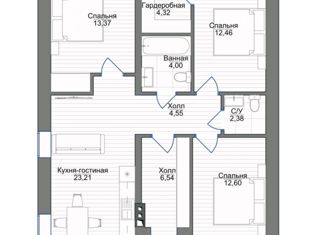 Общая площадь: 122 м2