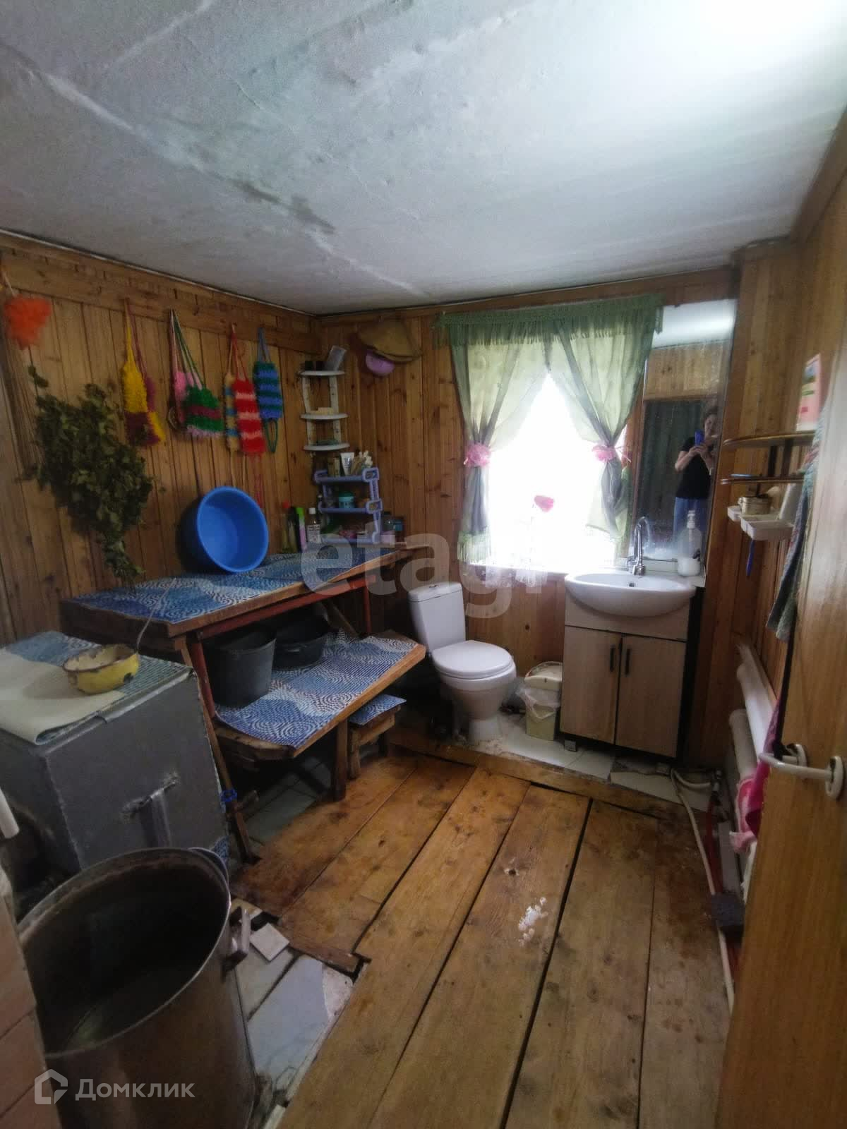 Дом двухэтажный. Мансардный этаж позволяет обустроить жилой второй этаж. На 1 этаже кухня с котельной, 3 отапливаемых комнаты, санузел, газовая баня с предбанником (вход из кухни), веранда, кладовая, летняя (неотапливаемая) комната и 2 прихожих (во двор и огород). На 2 этаже (мансардном) 1 неотапливаемая комната и хозяйственное помещение.
