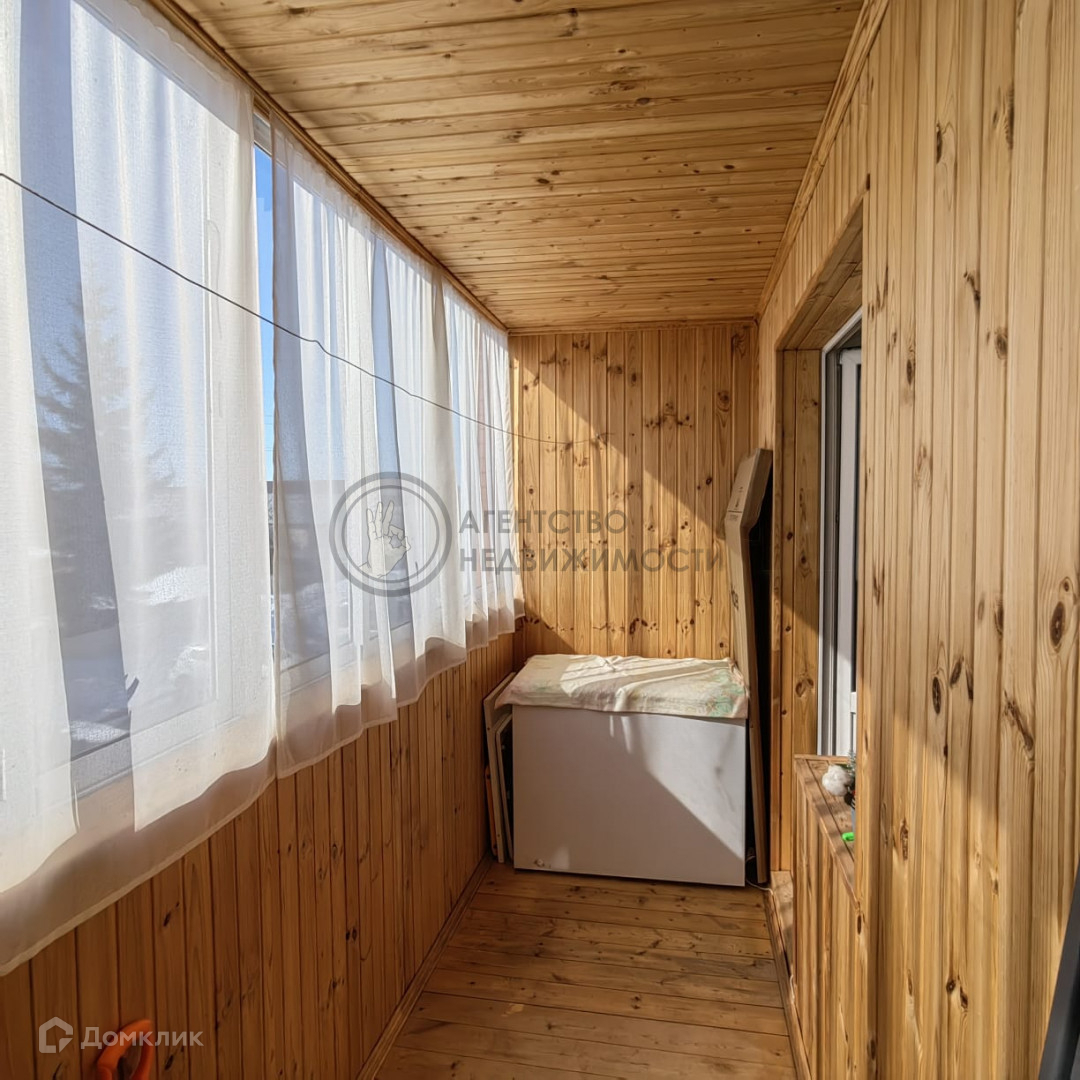 Есть просторная лоджия обшитая вагонкой. и полки для хранения.