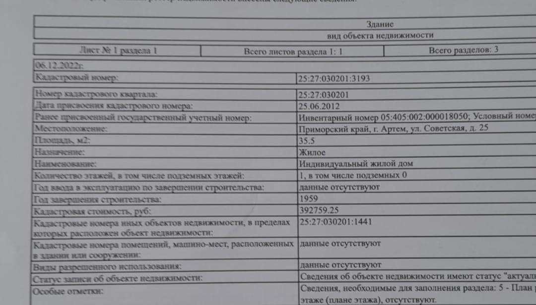 1-этажный дом, 35.5 м2, на продажу в Артёме, Советская улица, 25