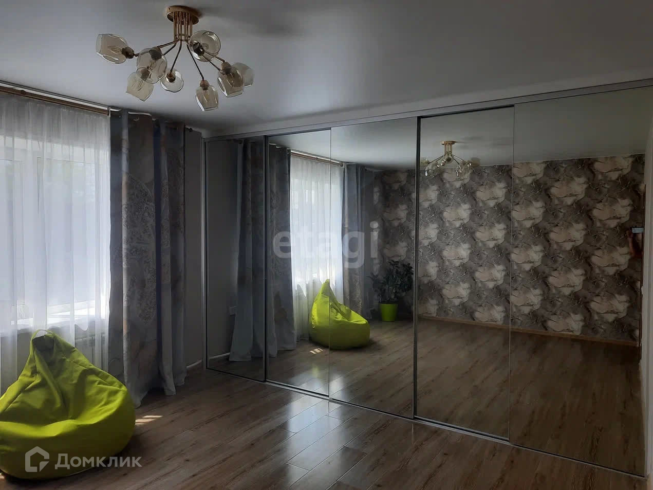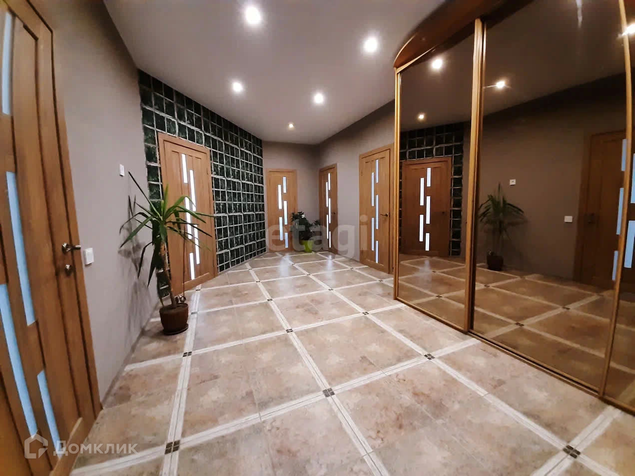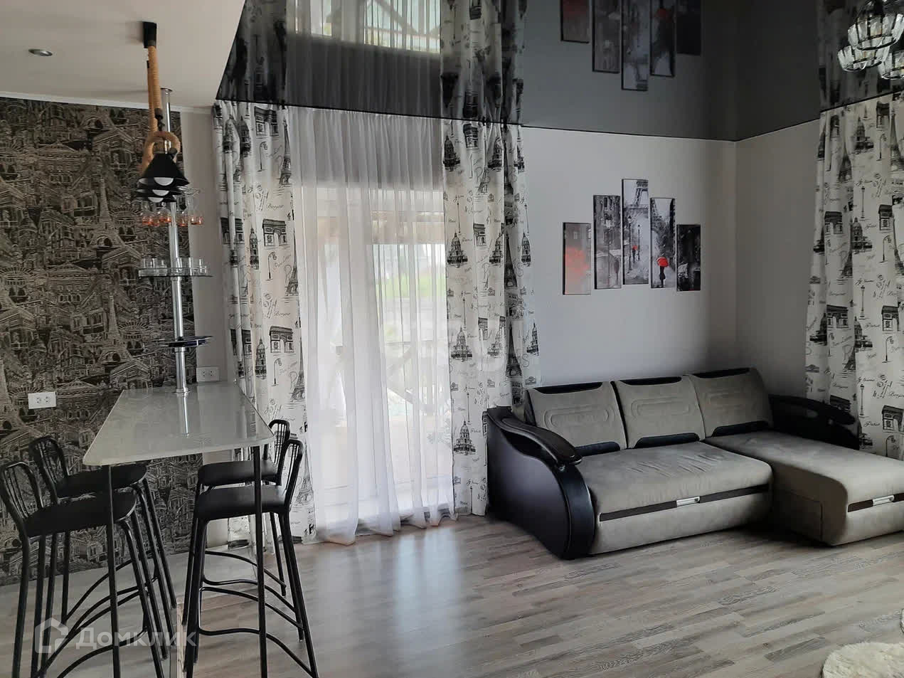 Два выхода – центральный и на задний дворик. Все комнаты меблированы. Новый современный ремонт.