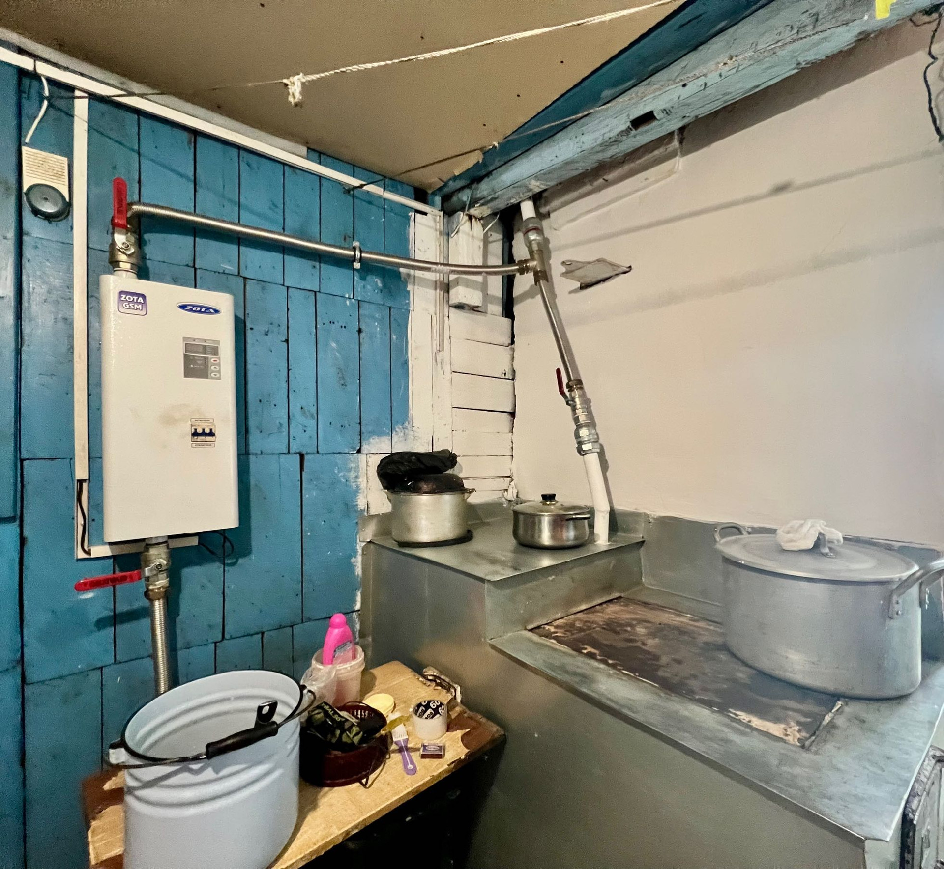 Отопление смешанное, установлен электрический котел ЗОТА, при желании можно отапливаться дровами.