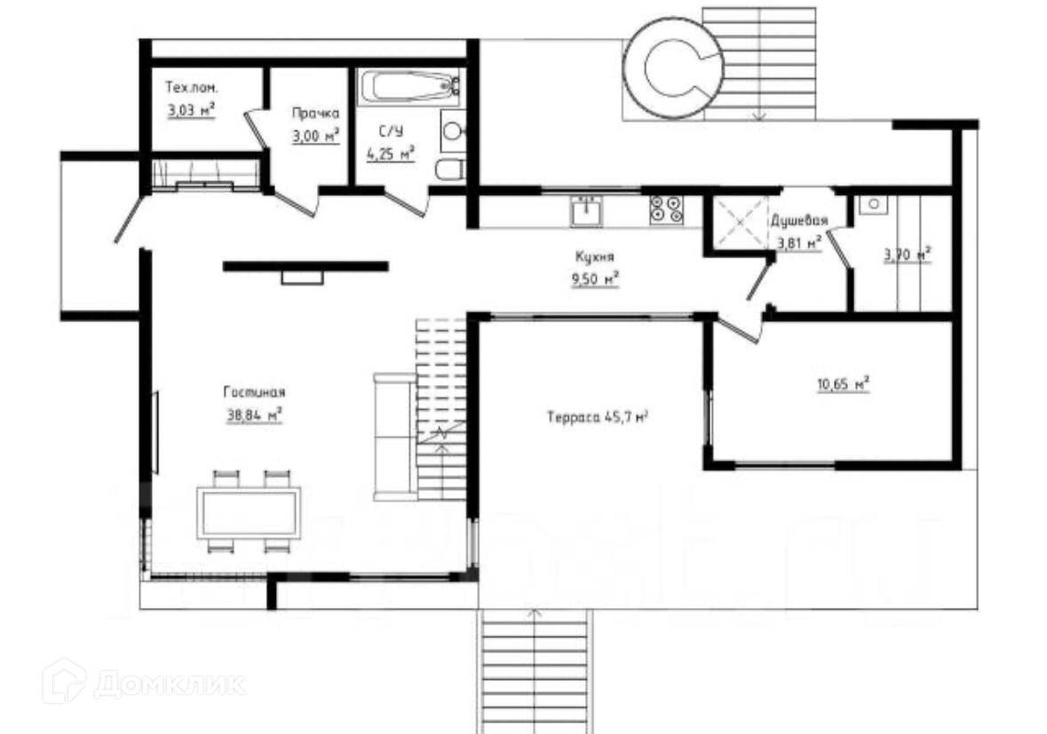 Общая площадь дома составляет 128 кв.м. без учета террас, с террасами около 150 кв. м.