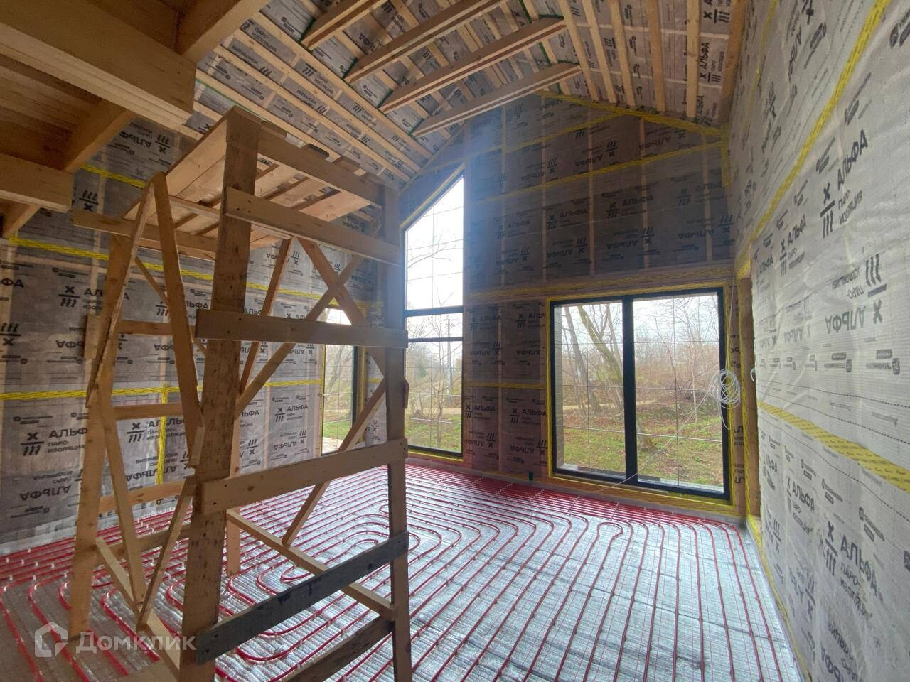 Дом построен по каркасной технологии с соблюдением всех требований. Каркас выполнен из доски камерной сушки с утеплением до 200 мм (утеплитель "Кнауф"). От воздействия влаги каркас защищают пароизоляция и мембрана профессиональных линеек производителей Технониколь и Тегола.