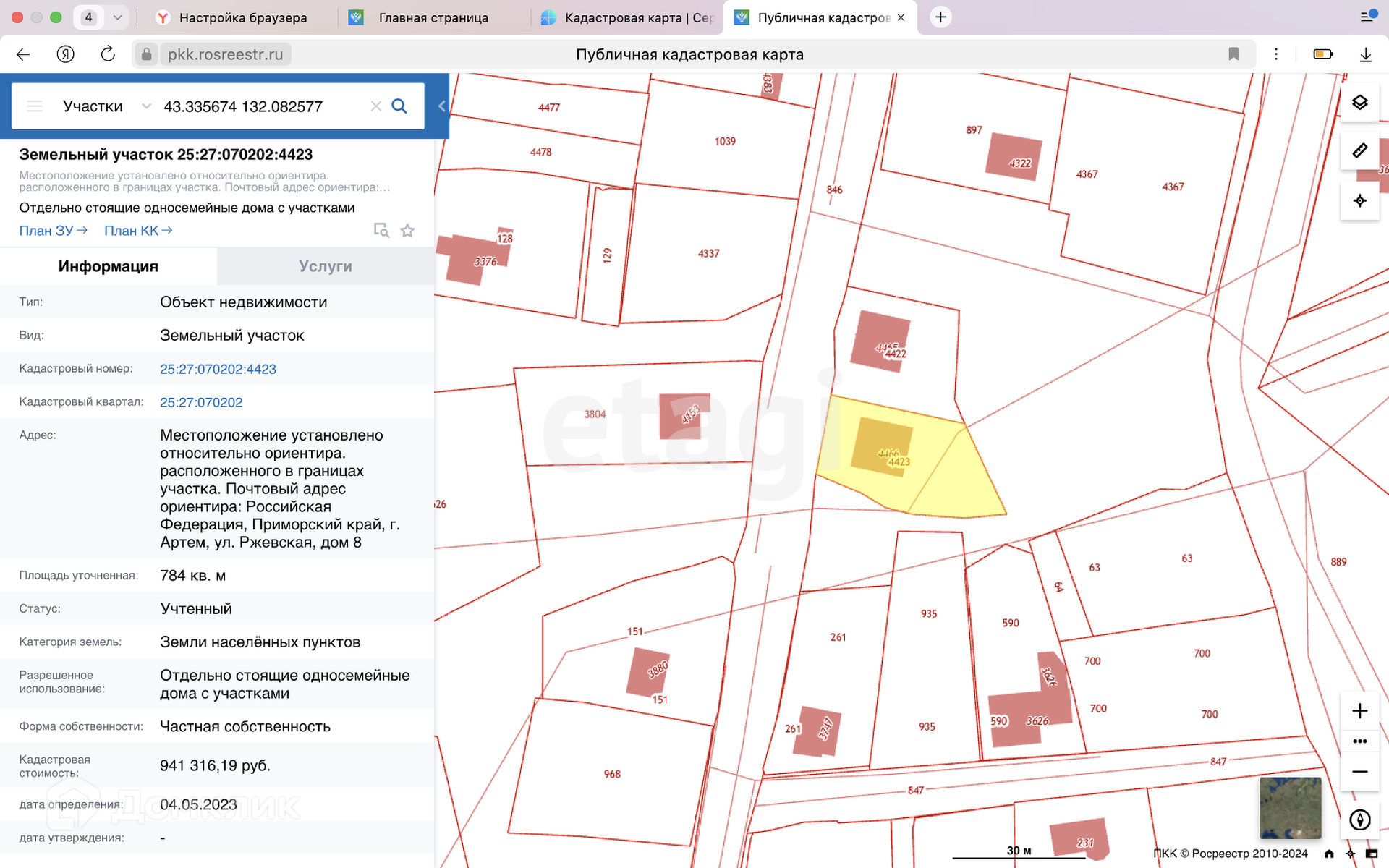 Площадь участка 7.8 сот.