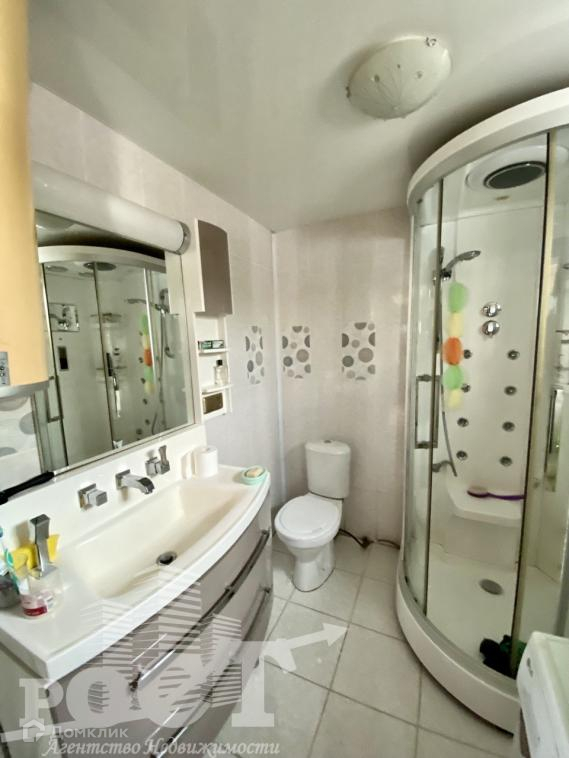 Санузел совмещен, выполнен в кафеле, с установленной душевой кабиной для комфортного принятия водных процедур.