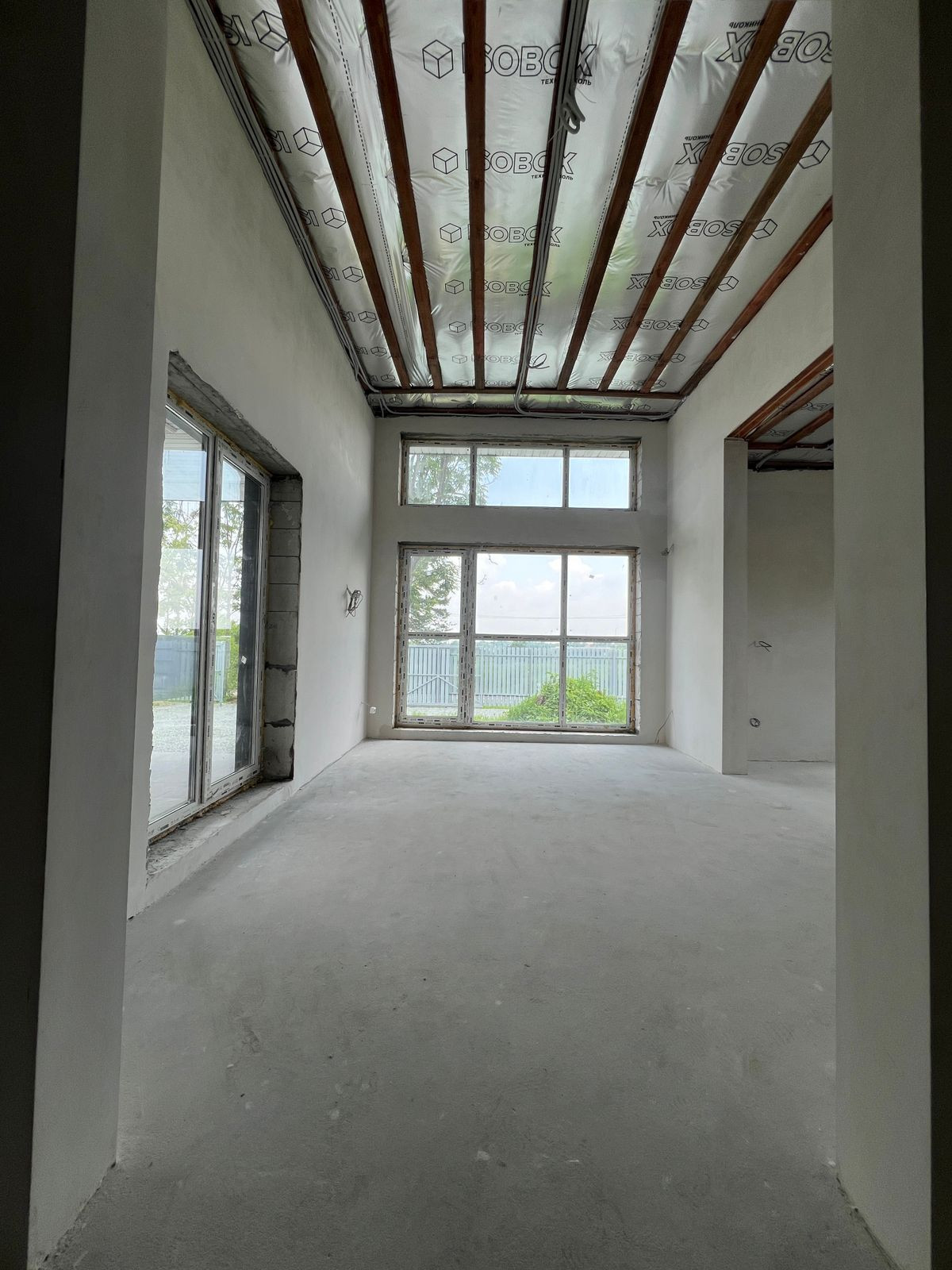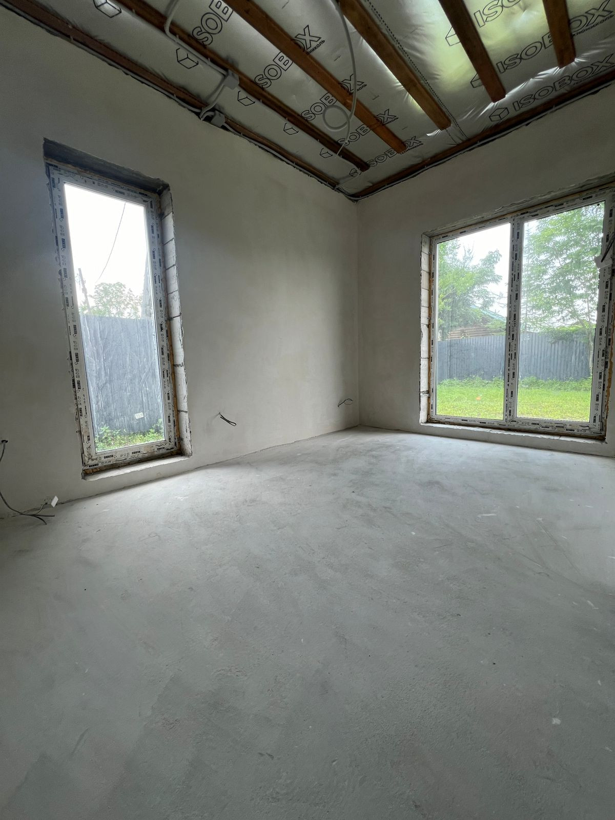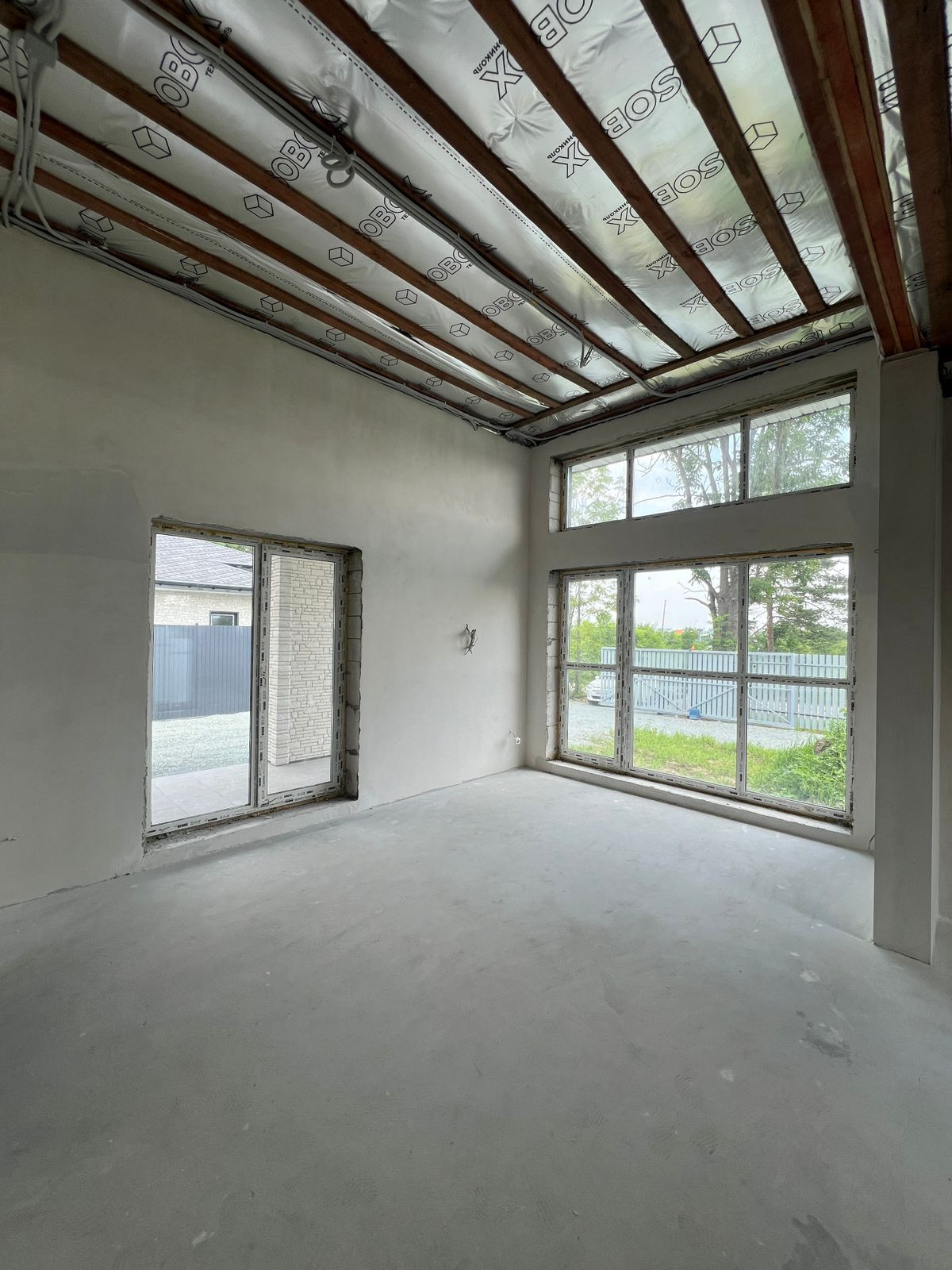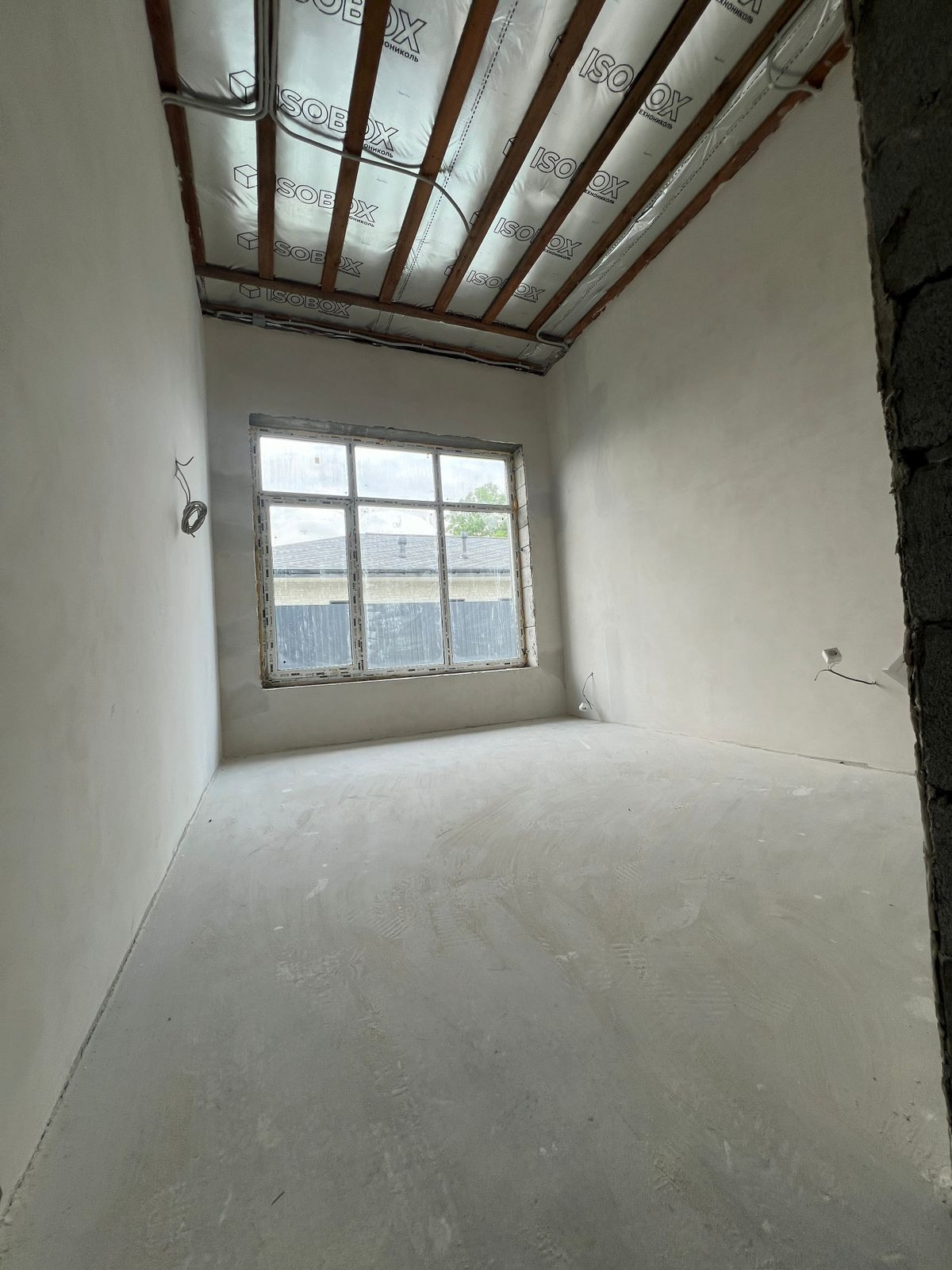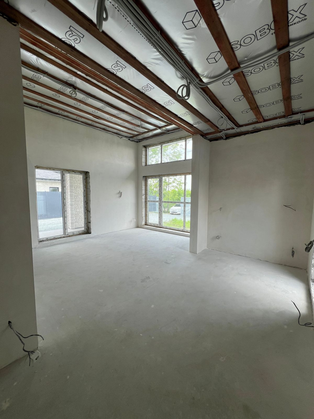 По всему дому выполнена предчистовая отделка White Box - стены оштукатурены, выровнены, произведено шпатлевание.