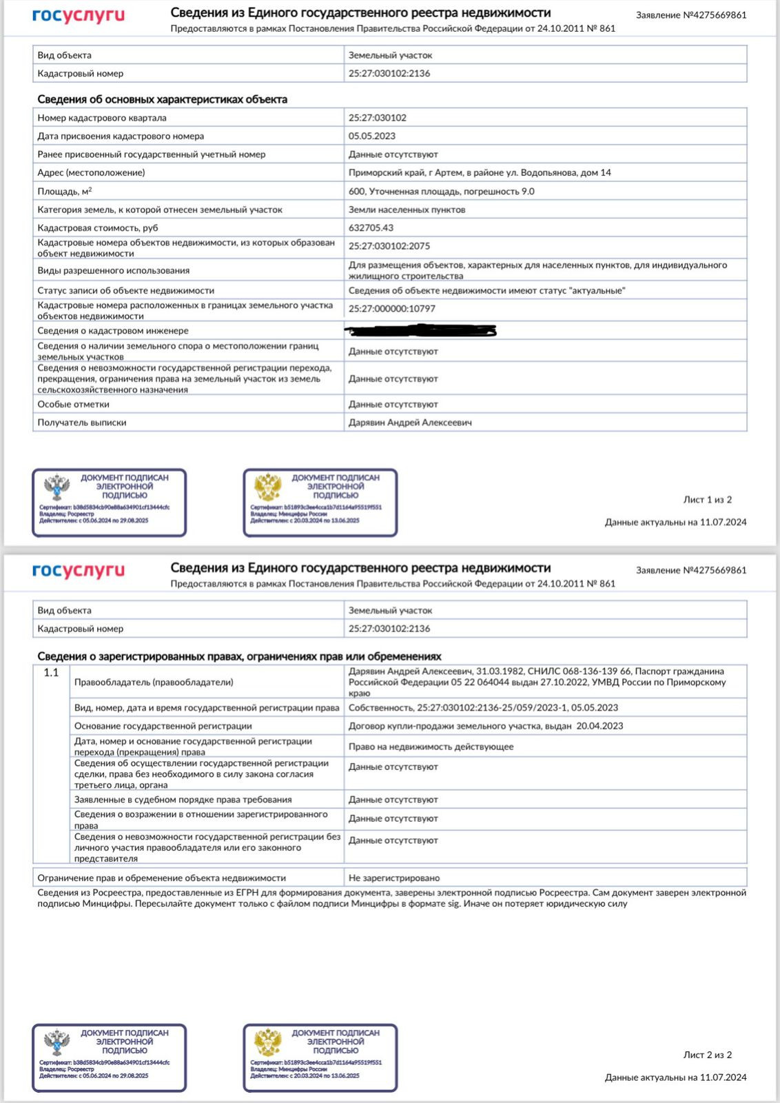 Площадь участка 600 сот.