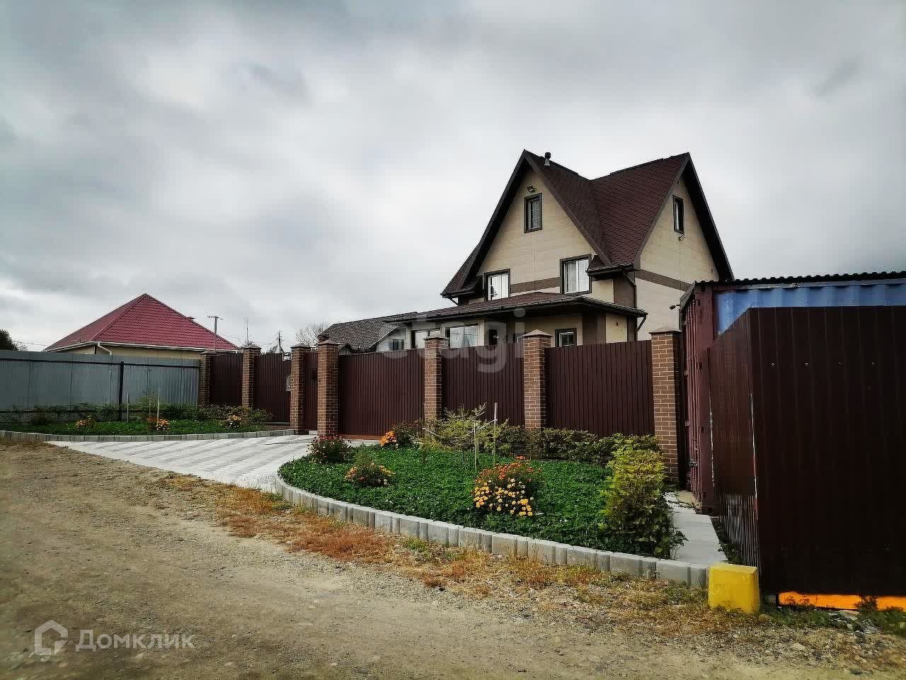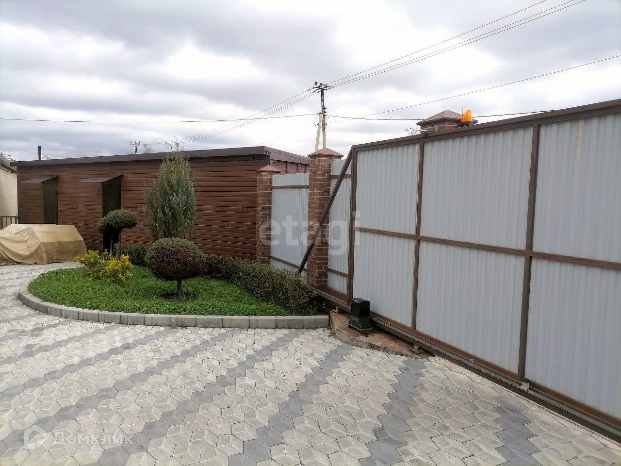 Двор выложен брусчаткой, ограждение выполнено из профлиста, ворота откатные, автоматические.