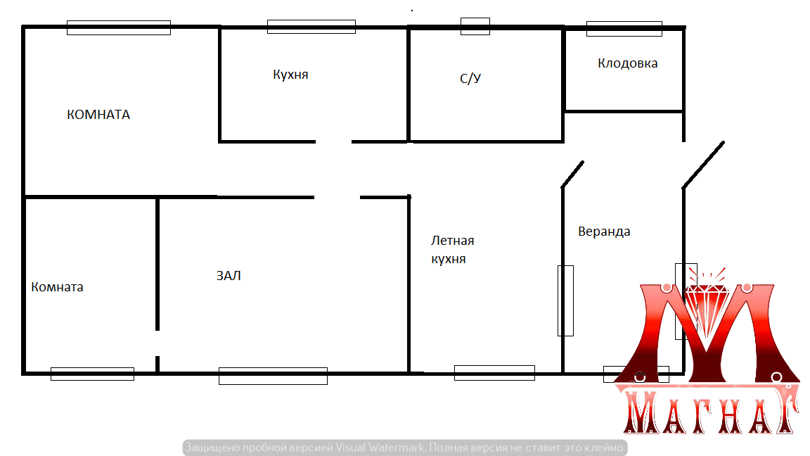 1. Материал стен - брус. Общая площадь - 48,6 кв.м. Планировка : 2 комнаты , зал , кухня, с/у, кладовка, веранда. Комнаты Смежно- раздельные. Отдельно огороженная придомовая территория 6 соток.