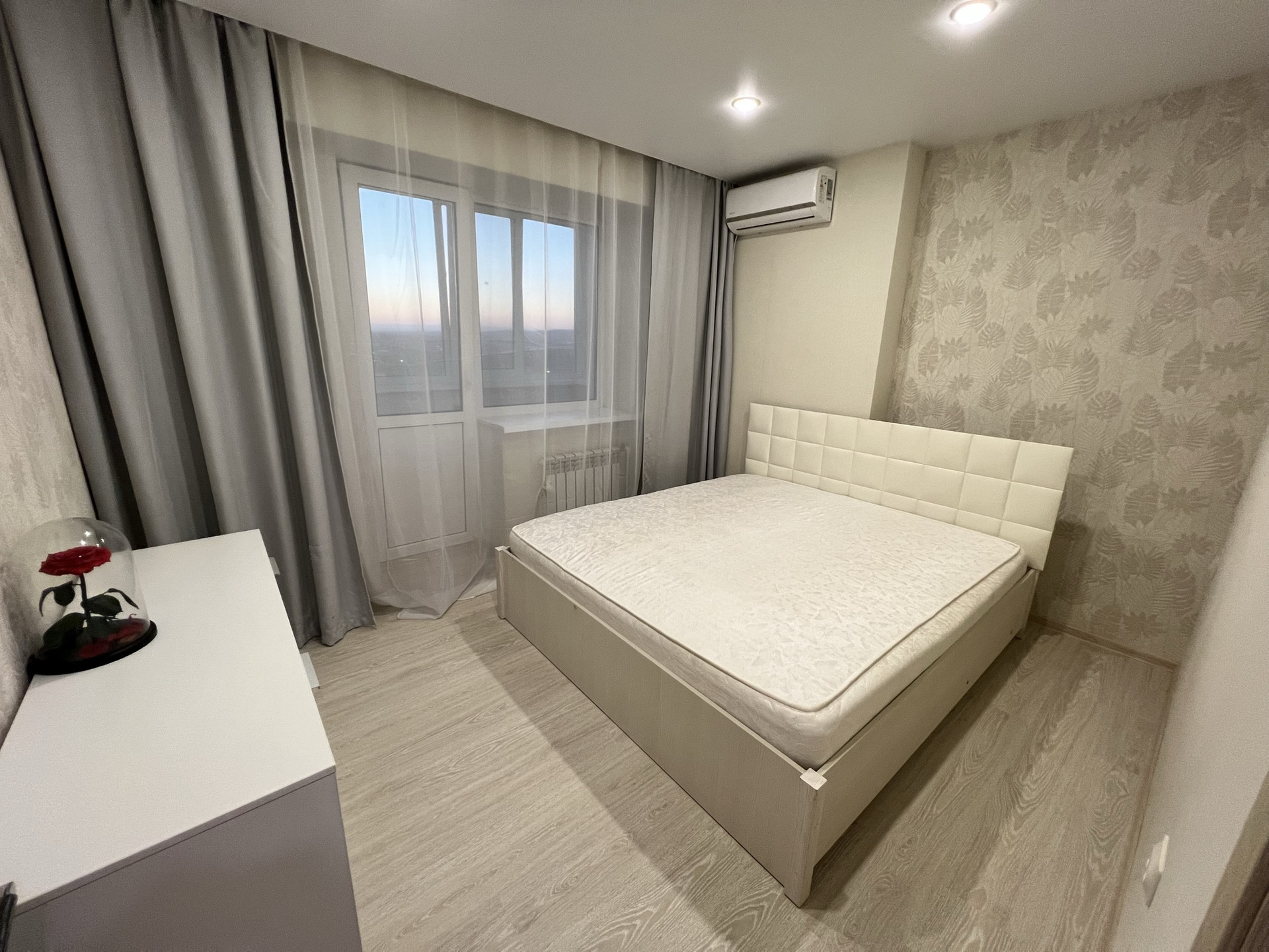 Продаётся с мебелью и техникой : 2 титана (большой в ванной комнате, маленький, новый в кухонной зоне), 2 раздельных кондиционера, встроенный кухонный гарнитур с варочной панелью и духовым шкафом, двуспальная кровать с матрацем, комод, гардеробная комната полностью со стеллажами и корзинами под личные вещи.