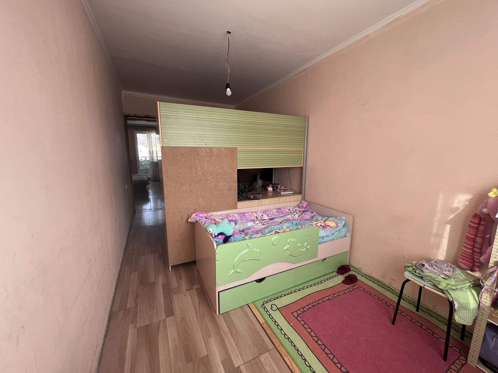 Состояние жилое,пл.окна,ламинат устелен на полу ,санузел совмещен кафель,стены и потолки выровнены