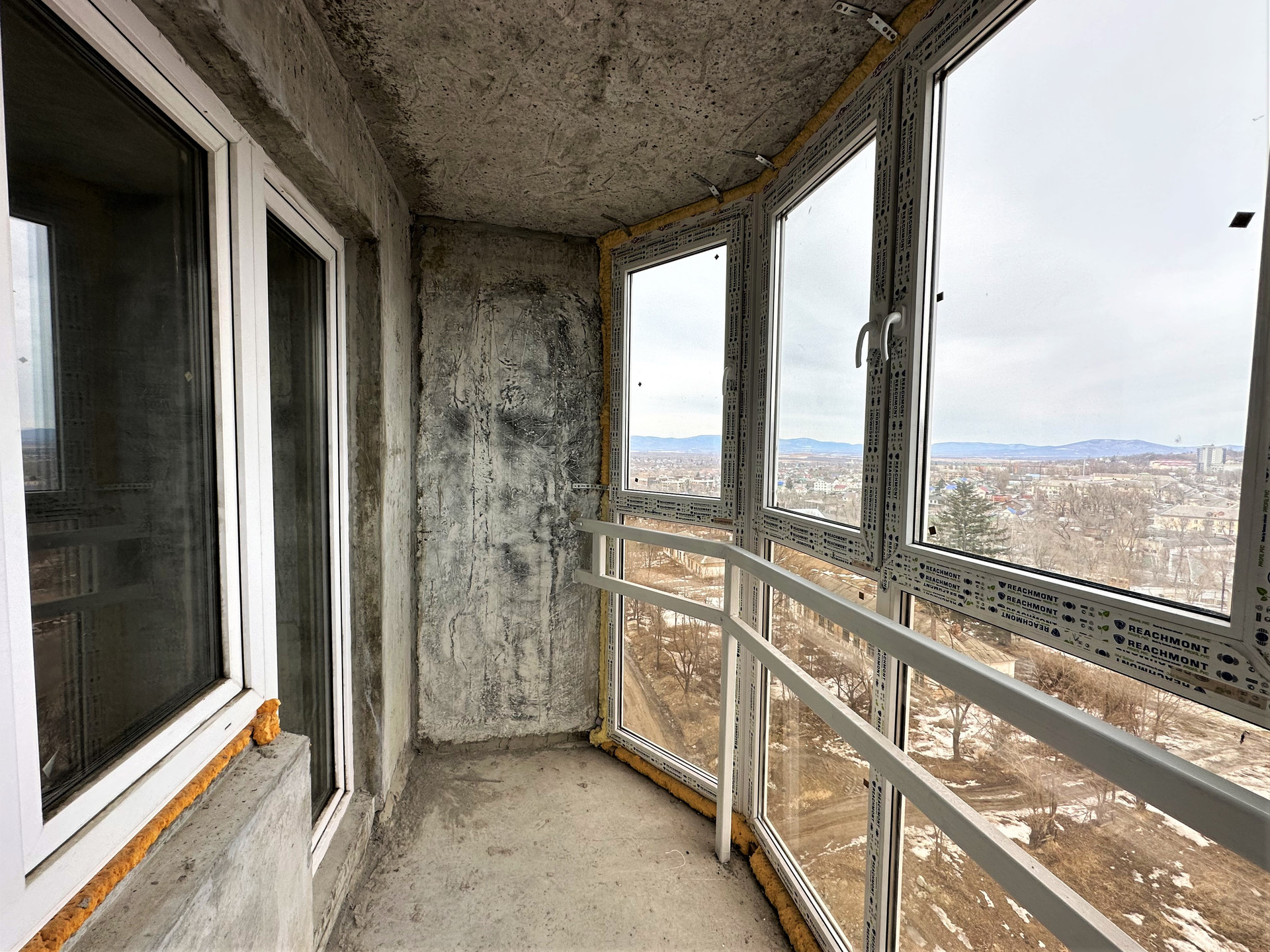 ВОСТОЧНАЯ СТОРОНА (вид на город). Благодаря панорамному остеклению балкона увеличена естественная освещенность квартиры.