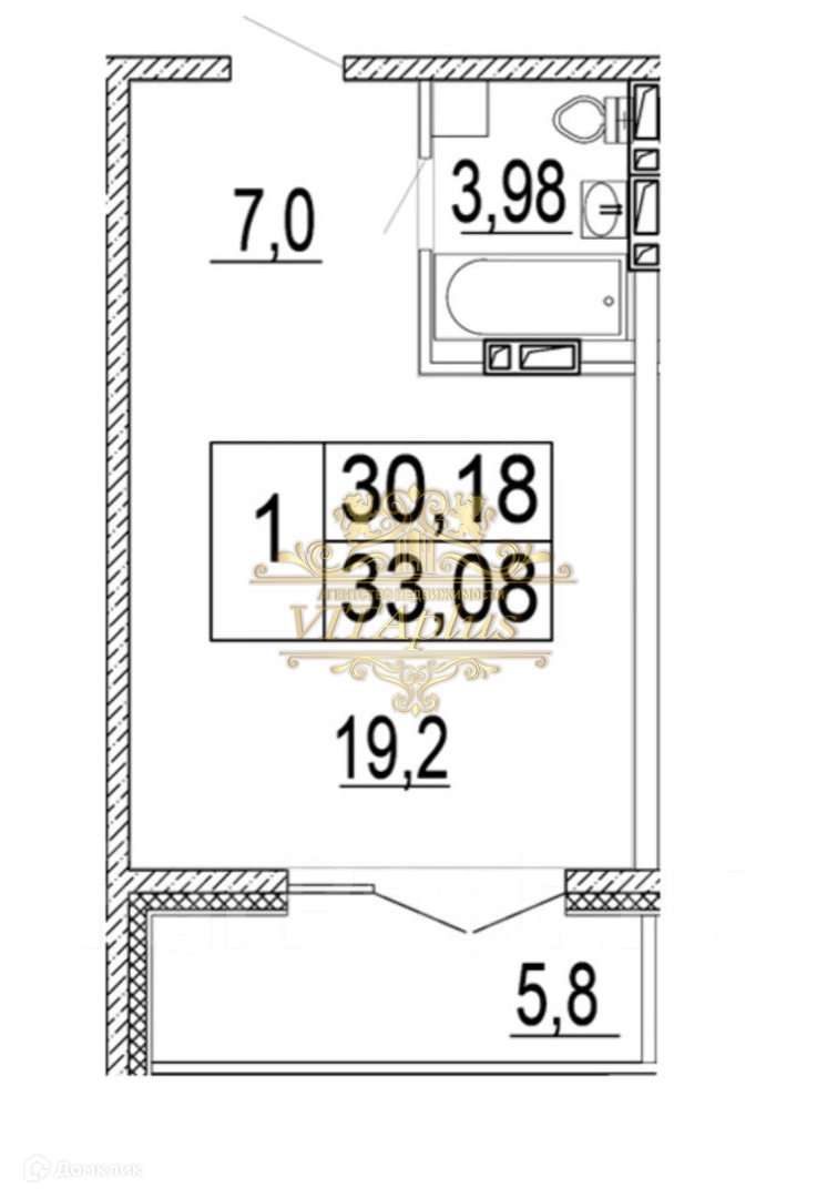 Общая площадь 33 м2