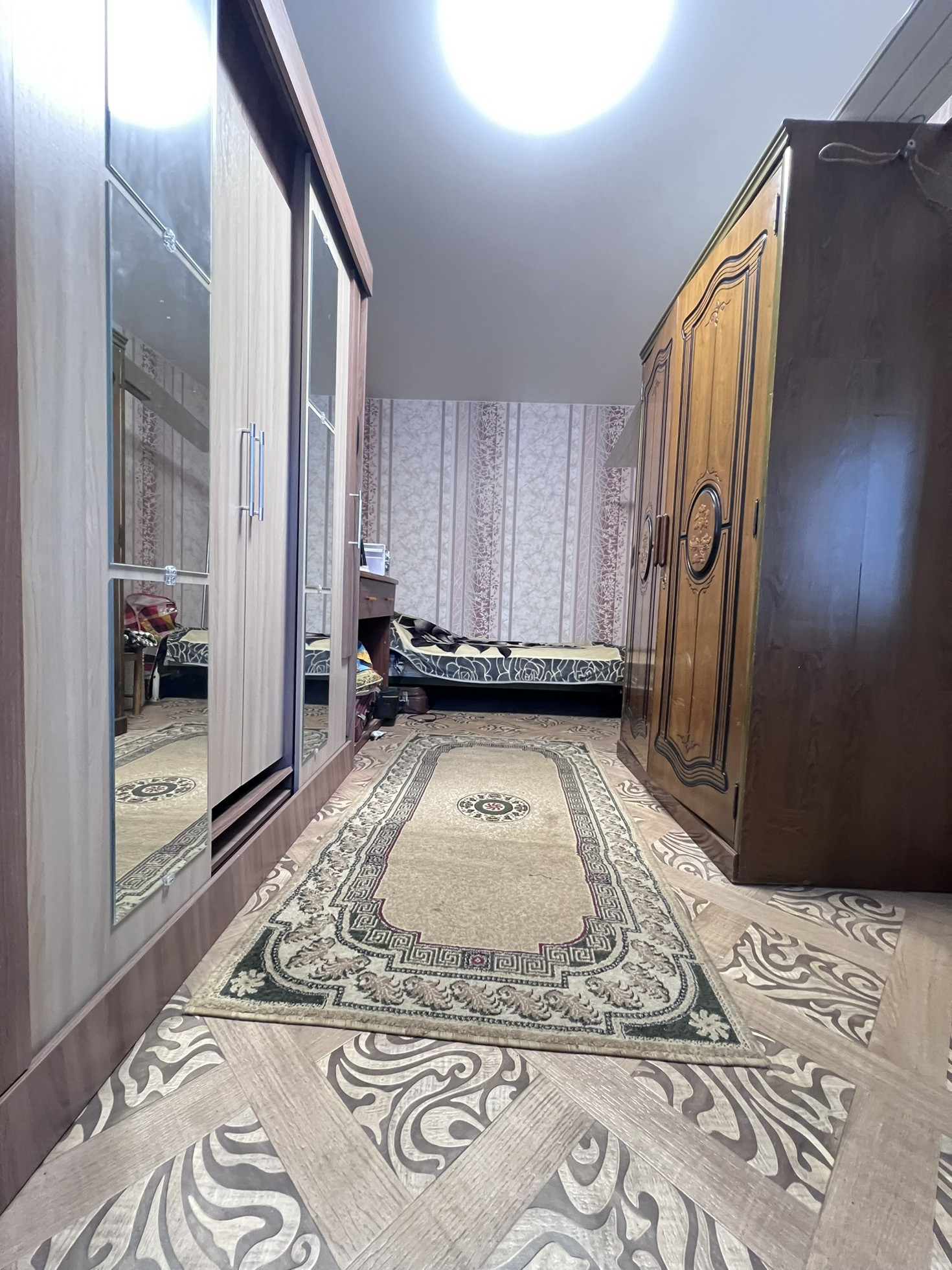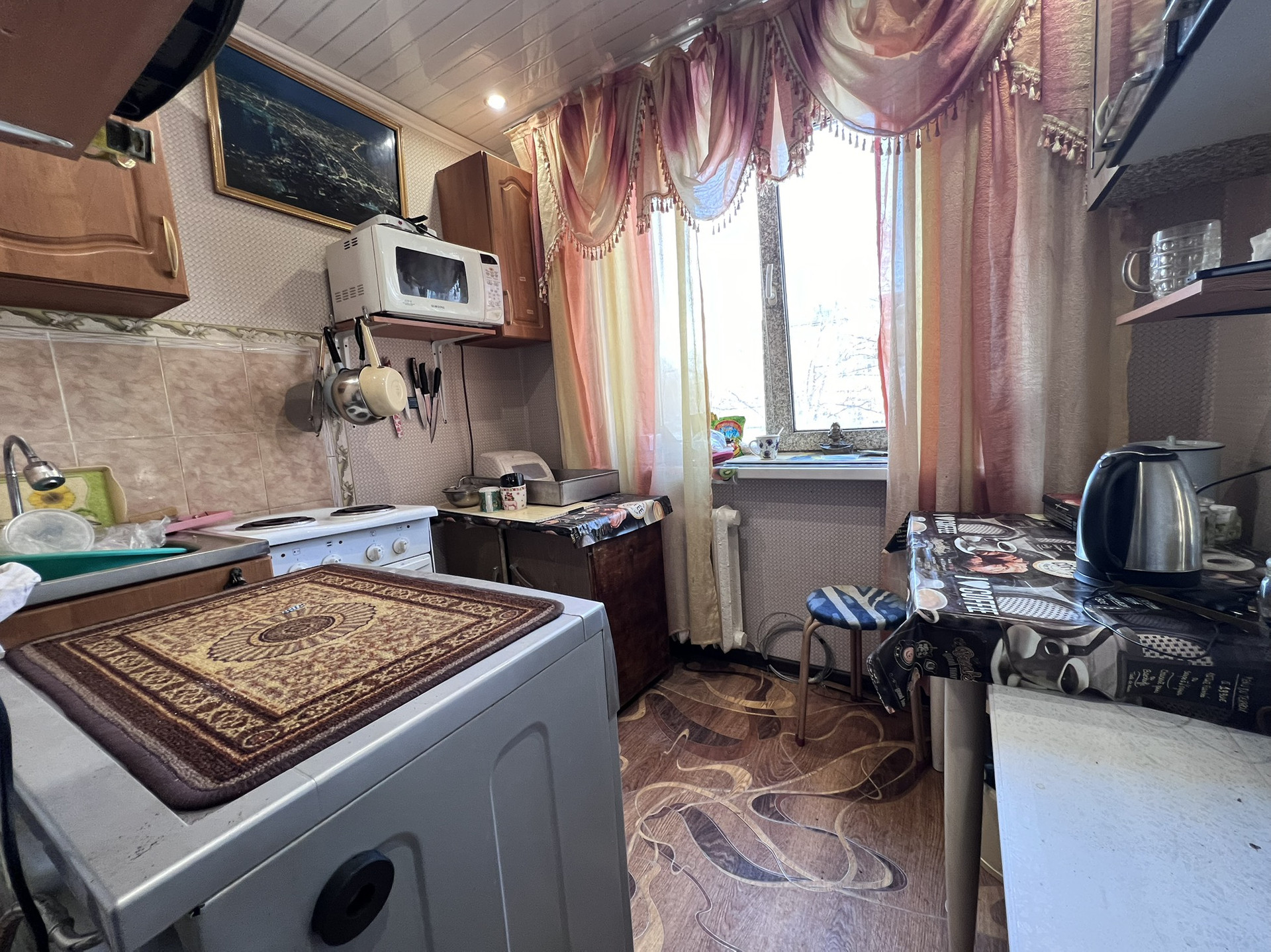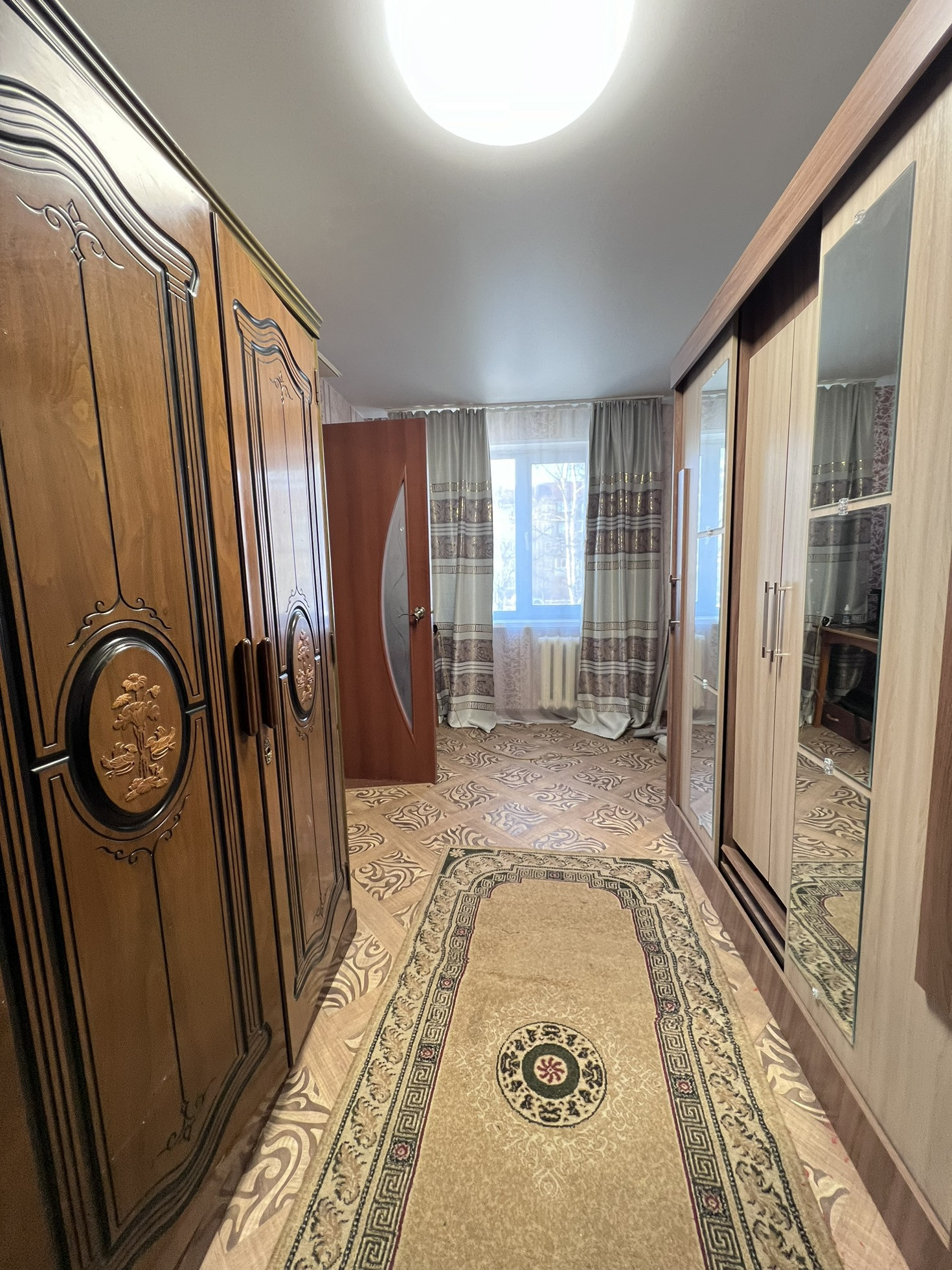 - пластиковые окна на кухне и в спальне, зал-деревянное;