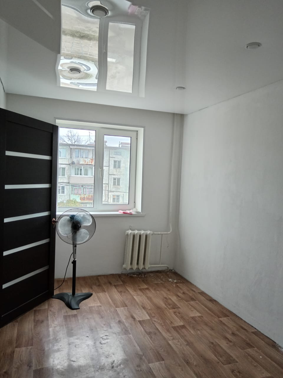В спальне натяжной потолок и выровнены стены