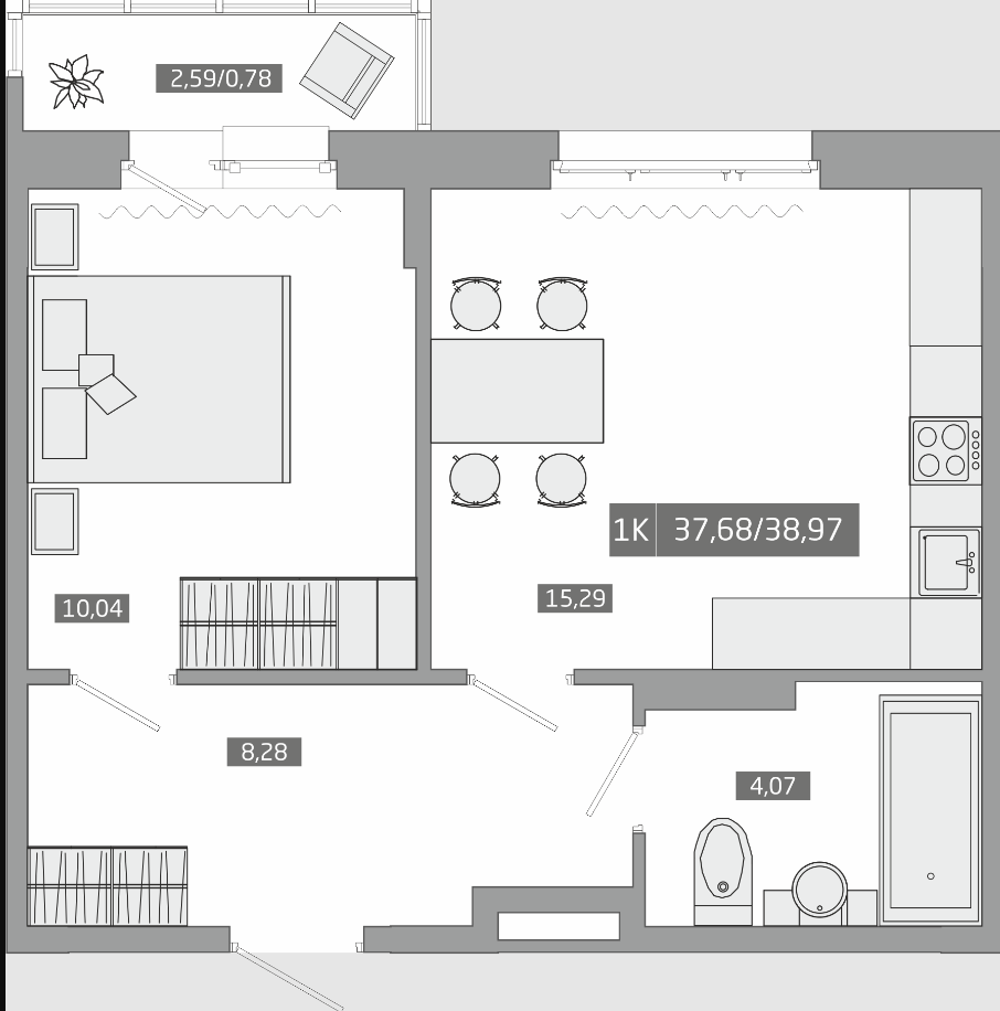 Общая площадь 38.97 м2