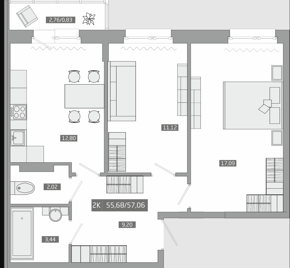 Общая площадь 57.06 м2