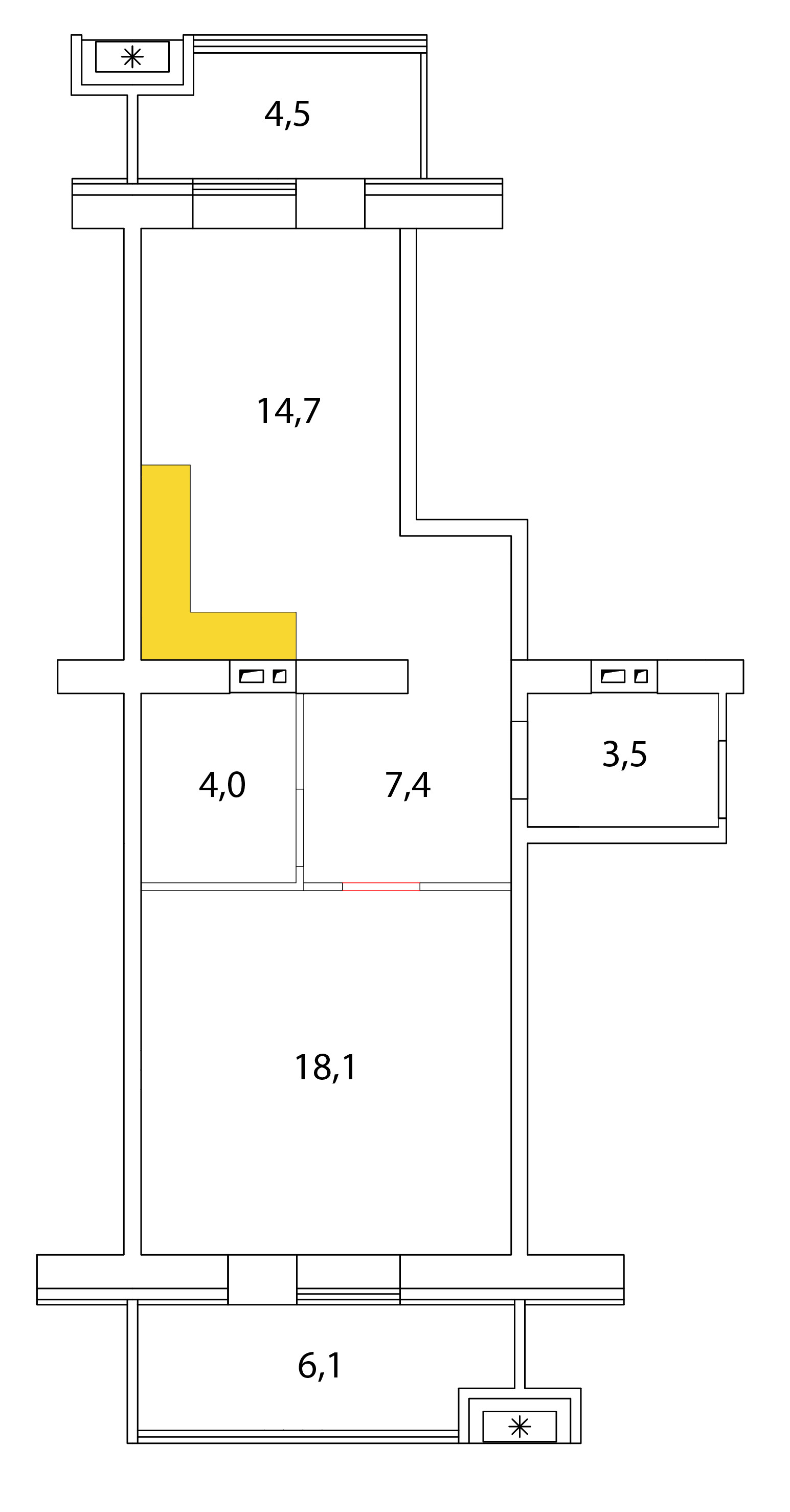 Особый акцент квартире придает две лоджии, которые удачно дополняют ее площадь. Здесь можно разместить отдельный рабочий кабинет или поставить кресла с журнальным столиком и любоваться пейзажем. Залитая солнцем южная сторона сделает квартиру теплой и уютной. Просторная кухня-студия.