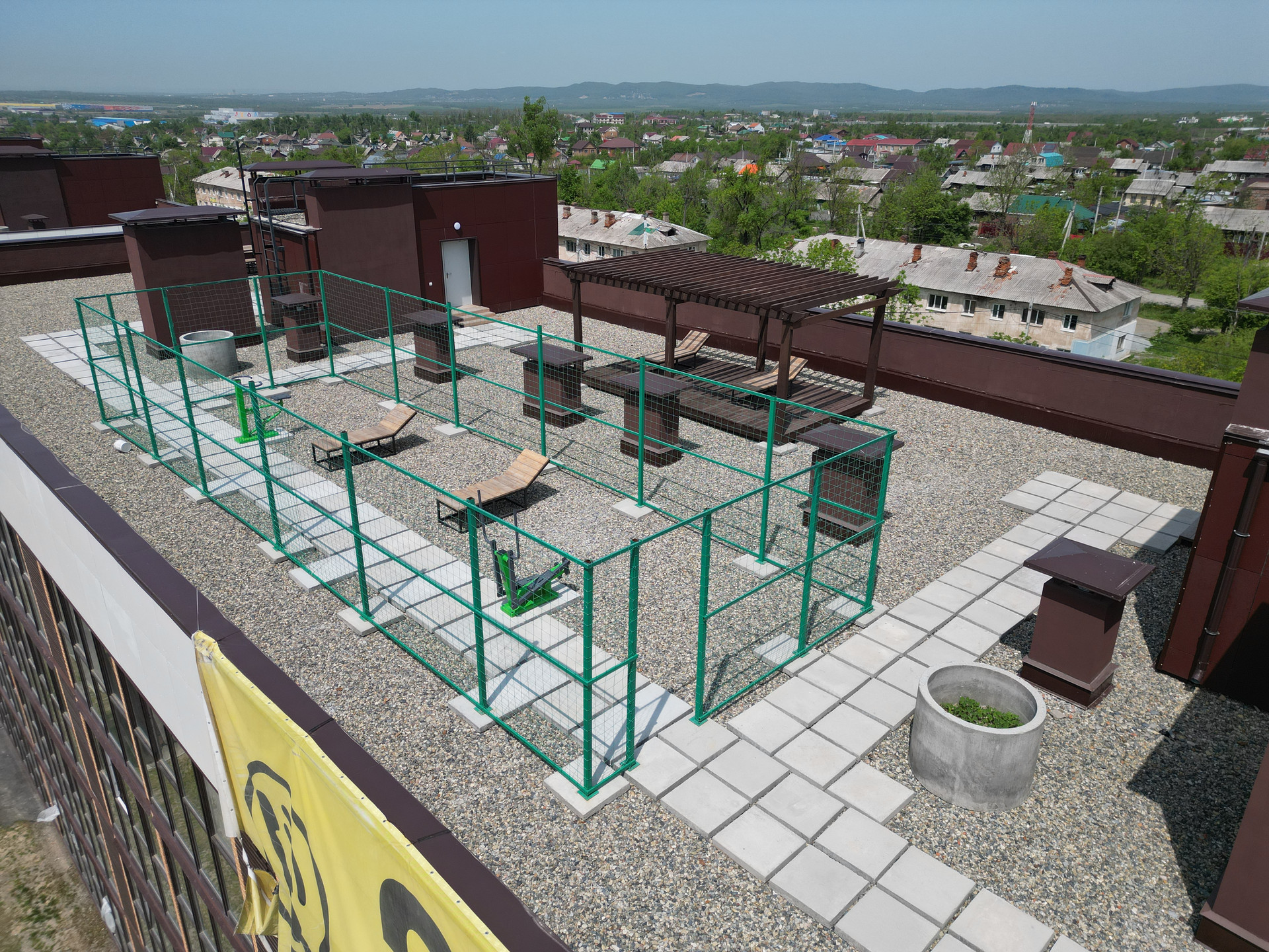 Отличительная особенность жилого комплекса - эксплуатируемая кровля. Прямо на крыше дома расположена лаунж зона, где Вы сможете полностью расслабиться, восстановить силы, неспешно выпить кофе с домашней выпечкой воскресным утром или провести вечер на свежем воздухе в компании друзей, а также позаниматься спортом на тренажерах и позагорать в шезлонгах.