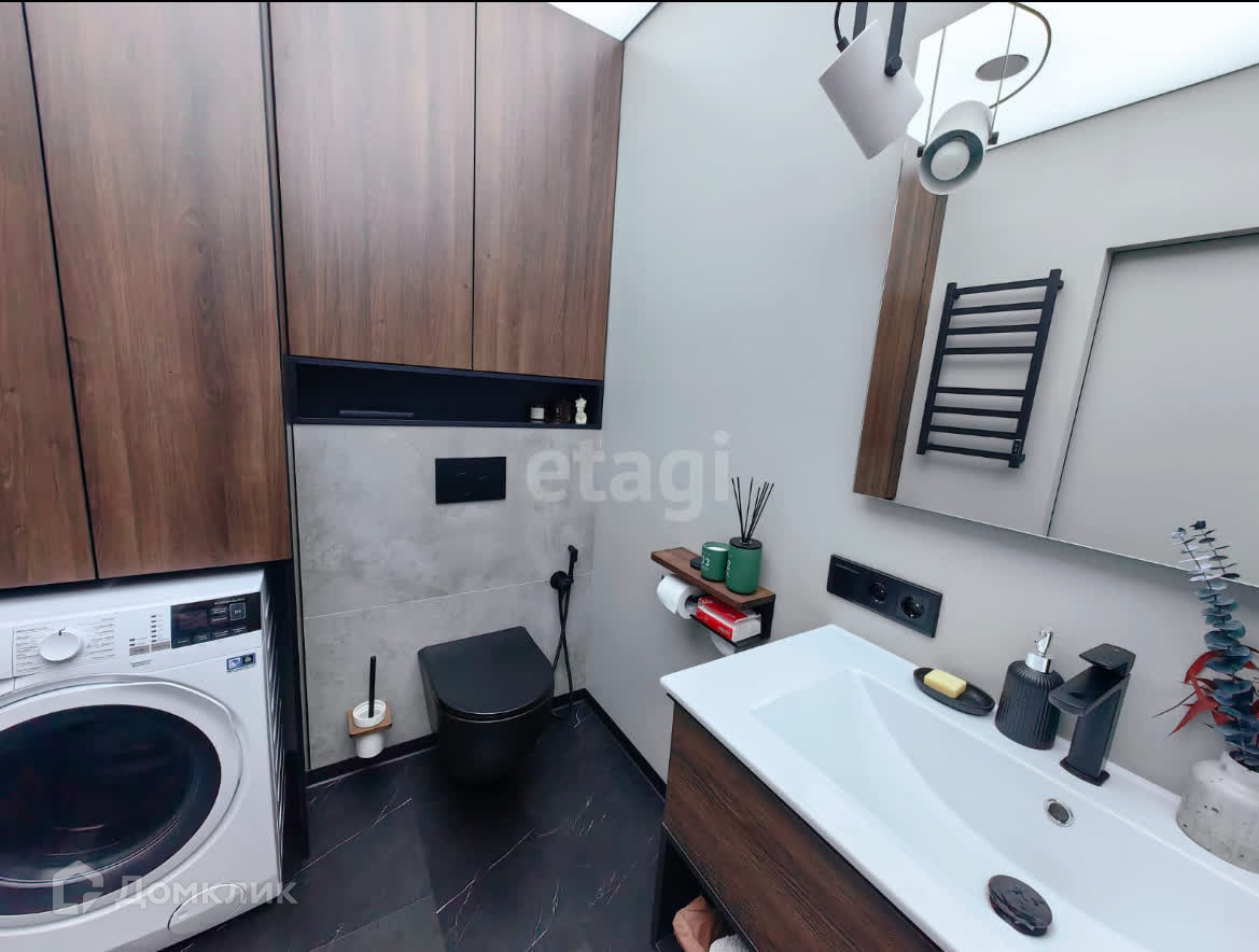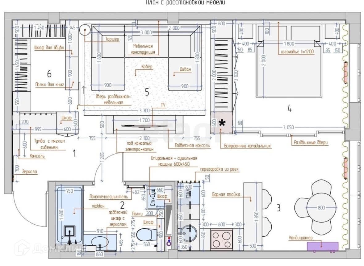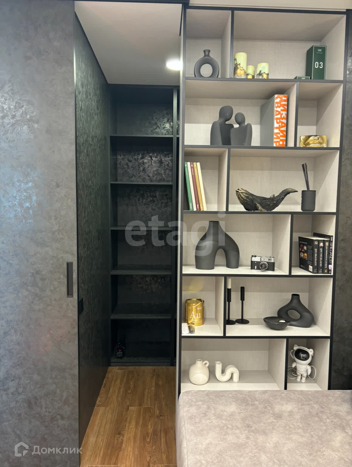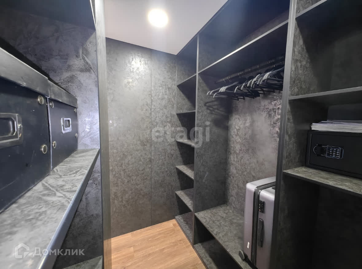 Большая гардеробная, кухня-гостиная, отдельная спальня, совмещенный санузел;