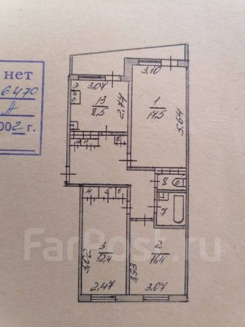 3-комнатная квартира, 68.1 м2, этаж 5 / 5, на продажу в Артёме, улица Фрунзе, 61