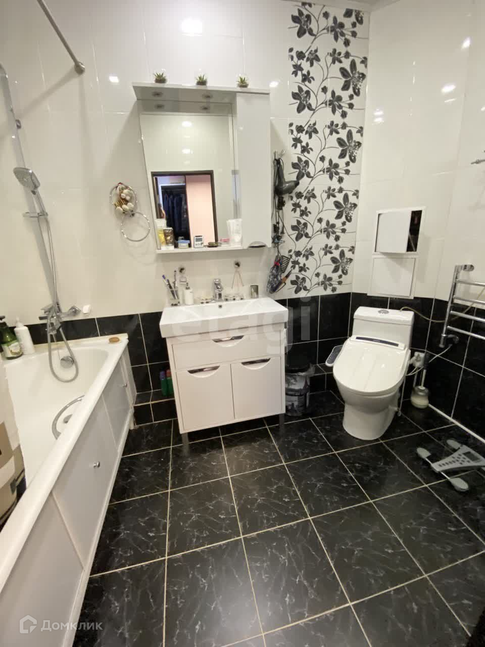 В ванной комнате современный кафель + теплый пол