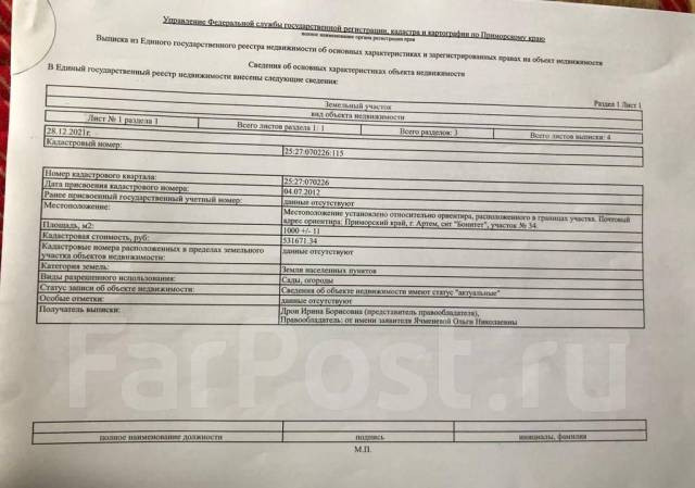 Участок под ИЖС, 1000 сот. на продажу в Артёме