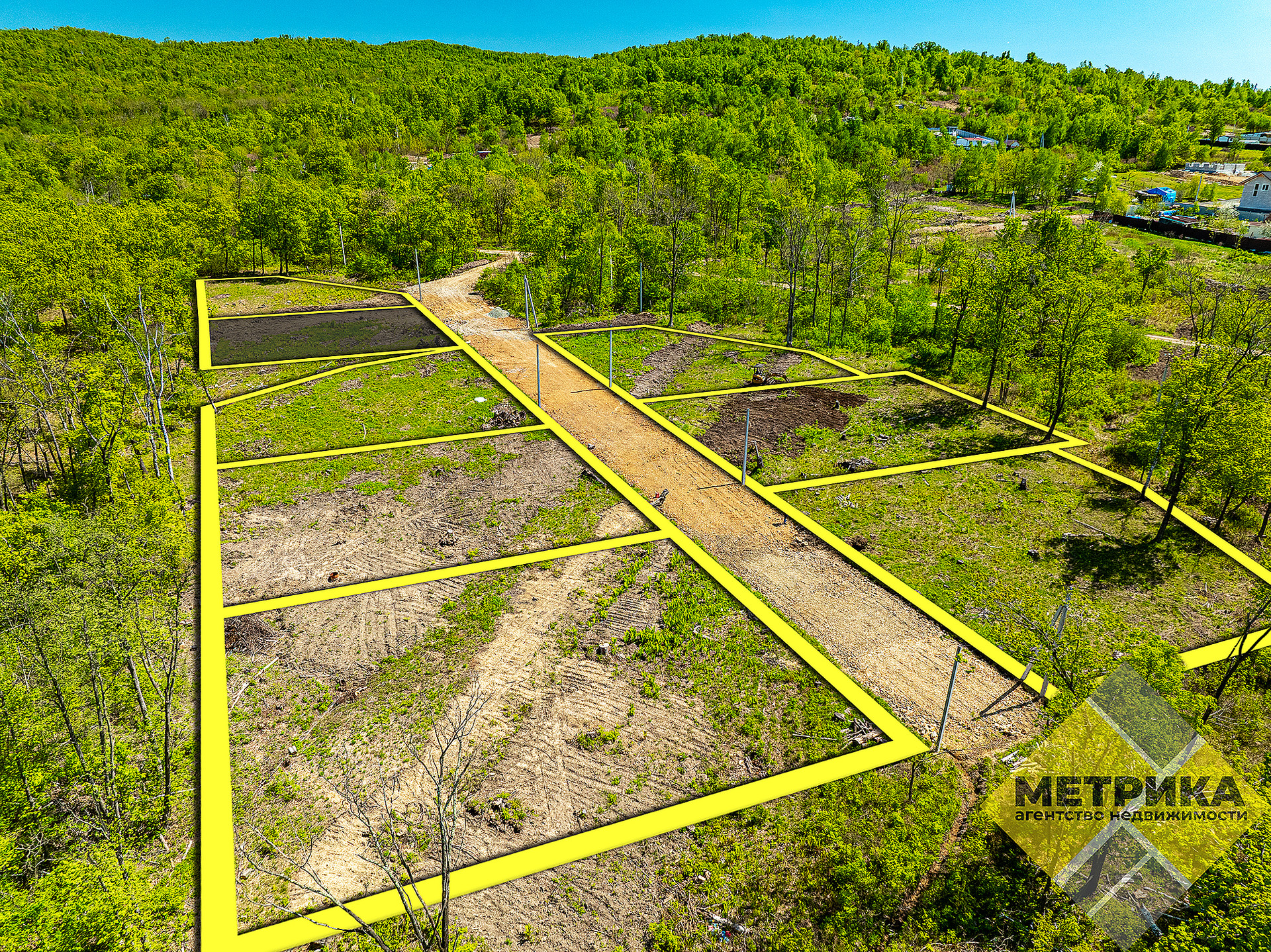 Земельный участок на закрытой территории. Территория предполагает максимальное количество домов = 8. Вокруг территории лесная зона. Соседние земельные участки отсутствуют, т.к. территория вокруг находится в землях запаса. На въезде будет установлен шлагбаум с дистанционным управлением, а также столбы освещения, предусмотрена гостевая парковка. Ширина проезда между участками 10 метров. Планируется асфальтирование дороги до улицы 1-я Рабочая. В данный момент идут работы по планировке участков и дороги. Все земельные участки подходят под "Дальневосточную ипотеку".