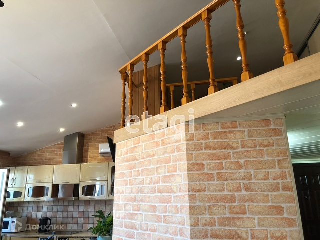 Поднявшись по лестнице вы окажетесь на территории, огражденной деревянными балясинами и с встроенным вместительным шкафом купе. Предназначение для данного пространства может быть разным - игровая для детей, библиотека, зона отдыха и т.д.