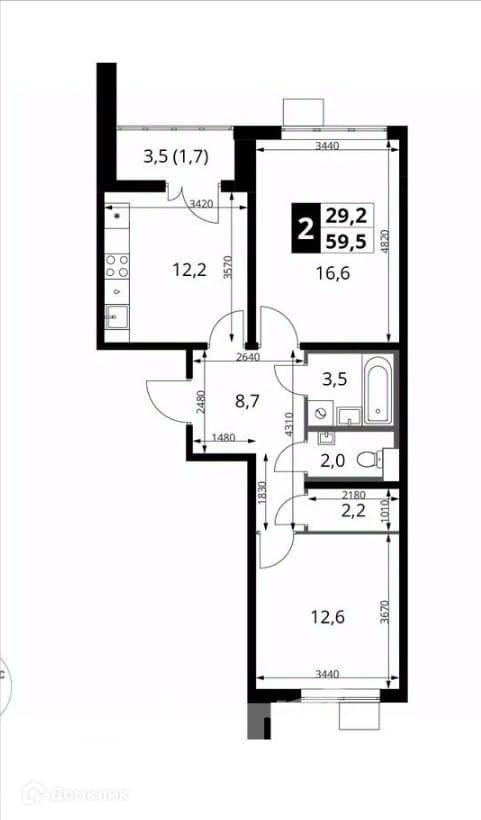 Общая площадь 55.7 м2